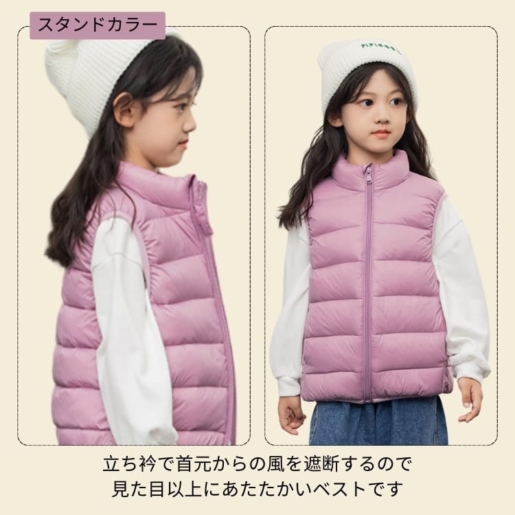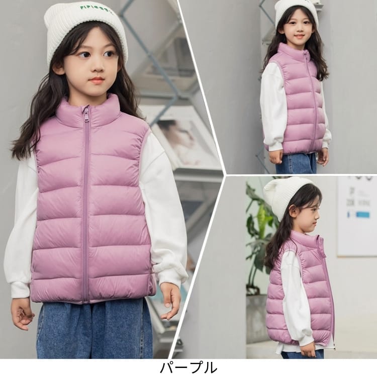 ダウンベスト キッズ 女の子 パープル キッズ ベビー マタニティ 続々登場 100cm 110cm 120cm 130cm 140cm 150cm 160cm 170cm グレー ネイビー ブラック グリーン ピンク パープル ブルー イエロー レッド
