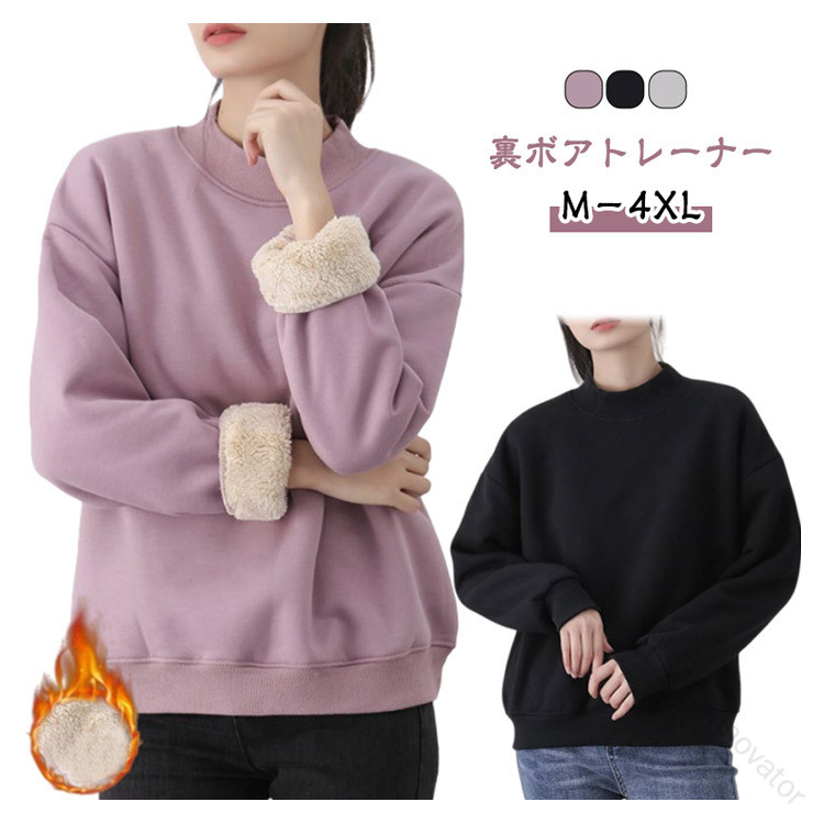 裏ボア スウェット トレーナー レディ レディースファッション 特集 パープル ブラック グレー M L XL 2XL 3XL 4XL