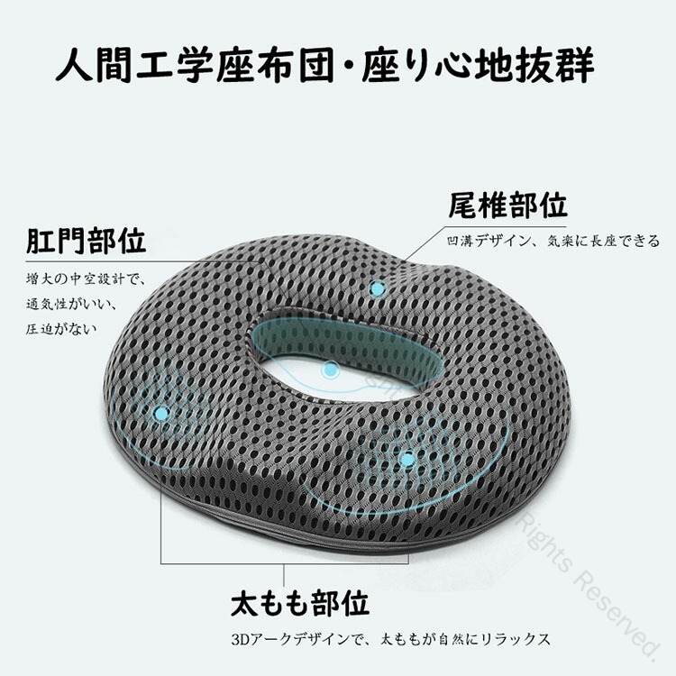 痔の痛みを軽減:U 型ですので、痔の痛みを軽減させるだけでなく尾てい骨の負担を軽減できます、両サイドからお尻を持ちあげるので、美尻効果もあります、さらに健康的な姿勢を促進します。