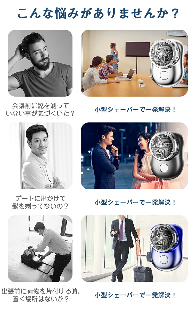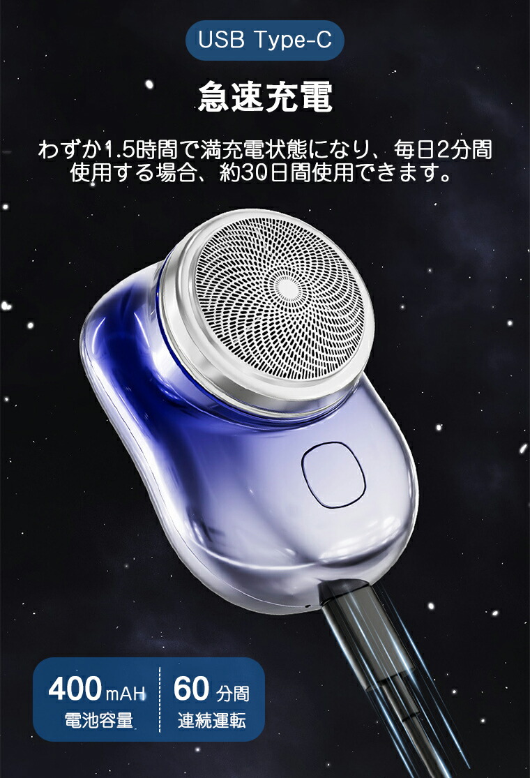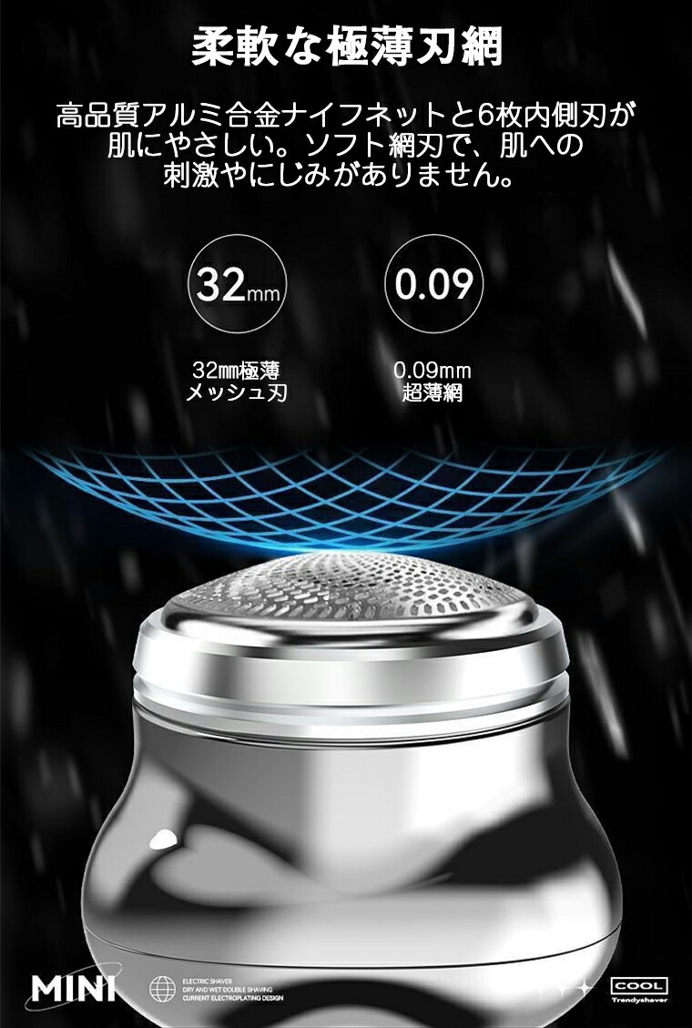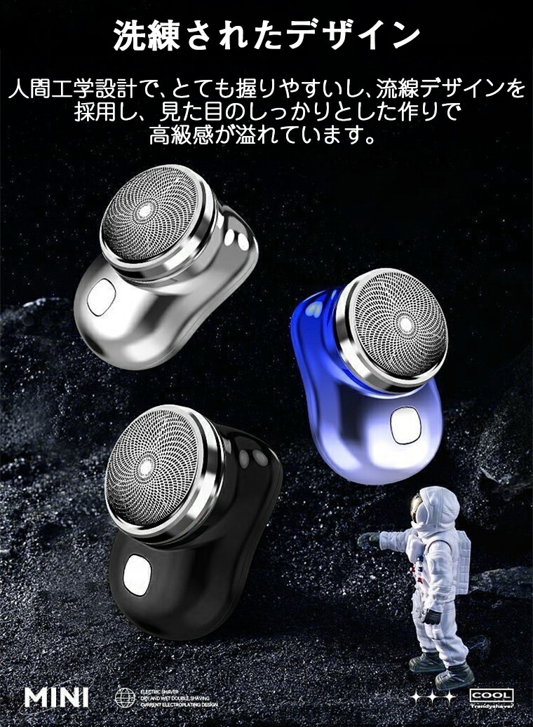 電動シェーバー 小型 メンズ 男性用 ブラック シルバー ブルー 小型電動シェーバー 本体+ 予備替え刃(3枚セット)