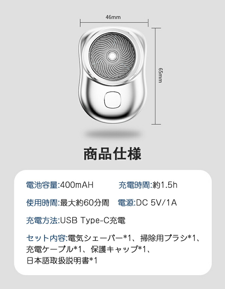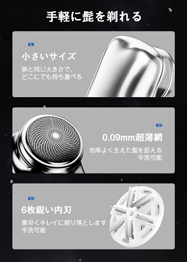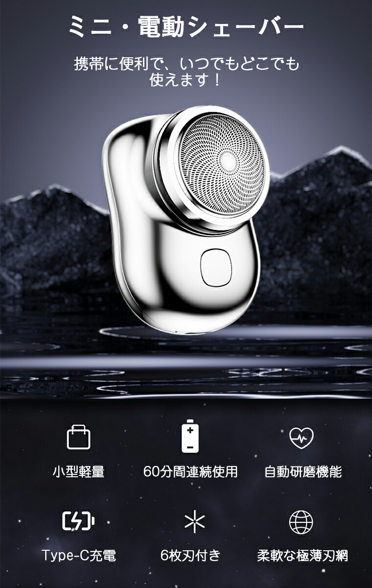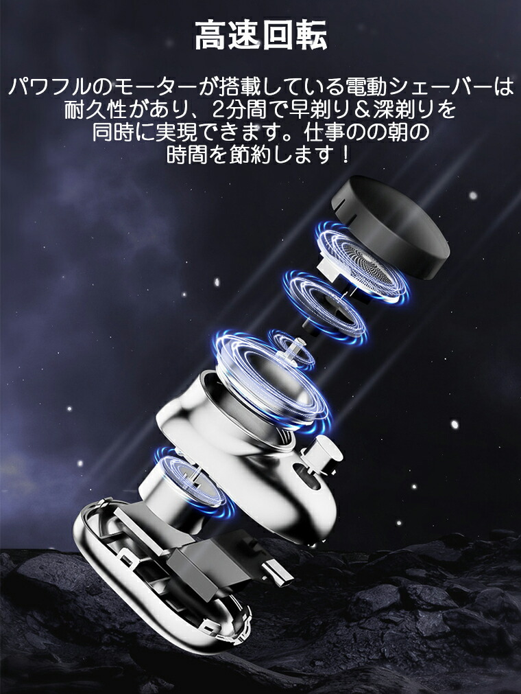 電動シェーバー 小型 メンズ 男性用 ブラック シルバー ブルー 小型電動シェーバー 本体+ 予備替え刃(3枚セット)