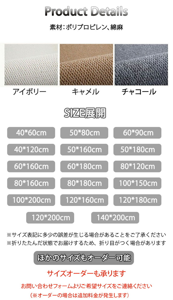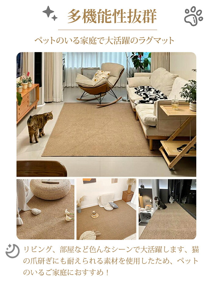 ペットマット 爪とぎ 滑らない 爪とぎ キャメル アイボリー チャコール 40*60cm 50*80cm 60*90cm 40*120cm 50*160cm 50*180cm 60*160cm 60*180cm 80*120cm 80*160cm 80*180cm 100*150cm 100*200cm 120*160cm 120*180cm 120*200cm 140*200cm オーダーメイド