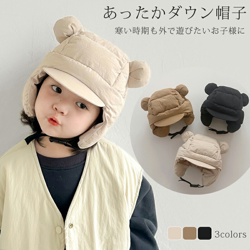 中綿 帽子 暖か あったか 防風 防寒 キッズ ベビー マタニティ 特集 ベージュ ブラウン ブラック