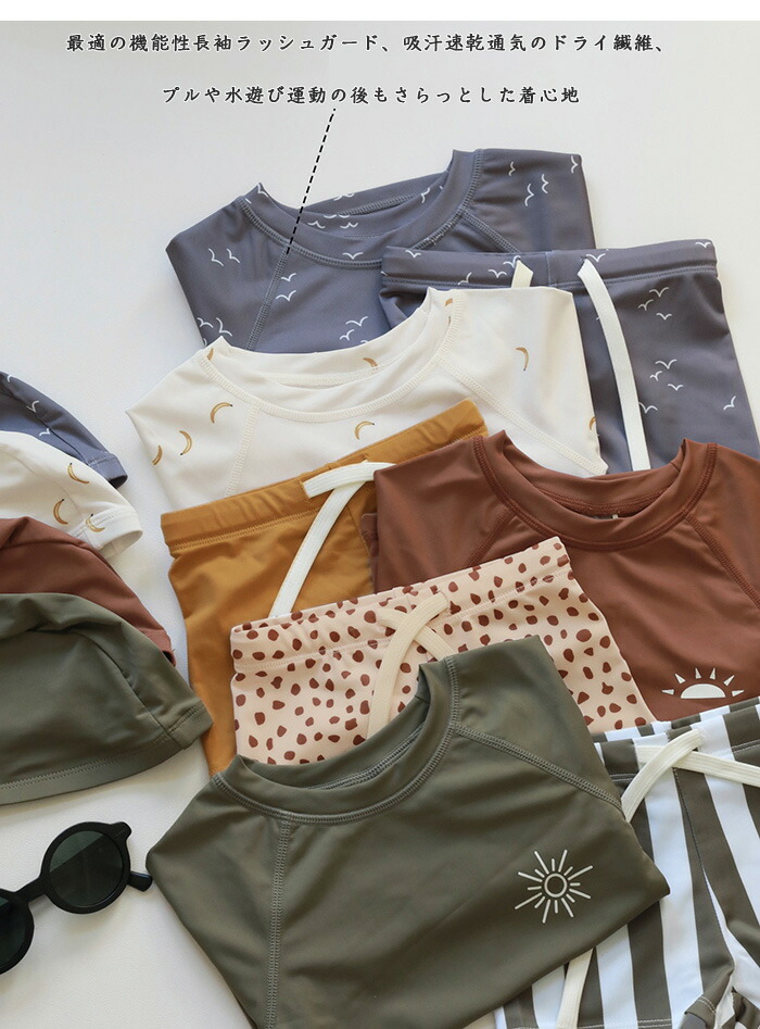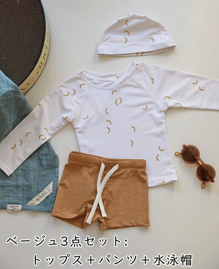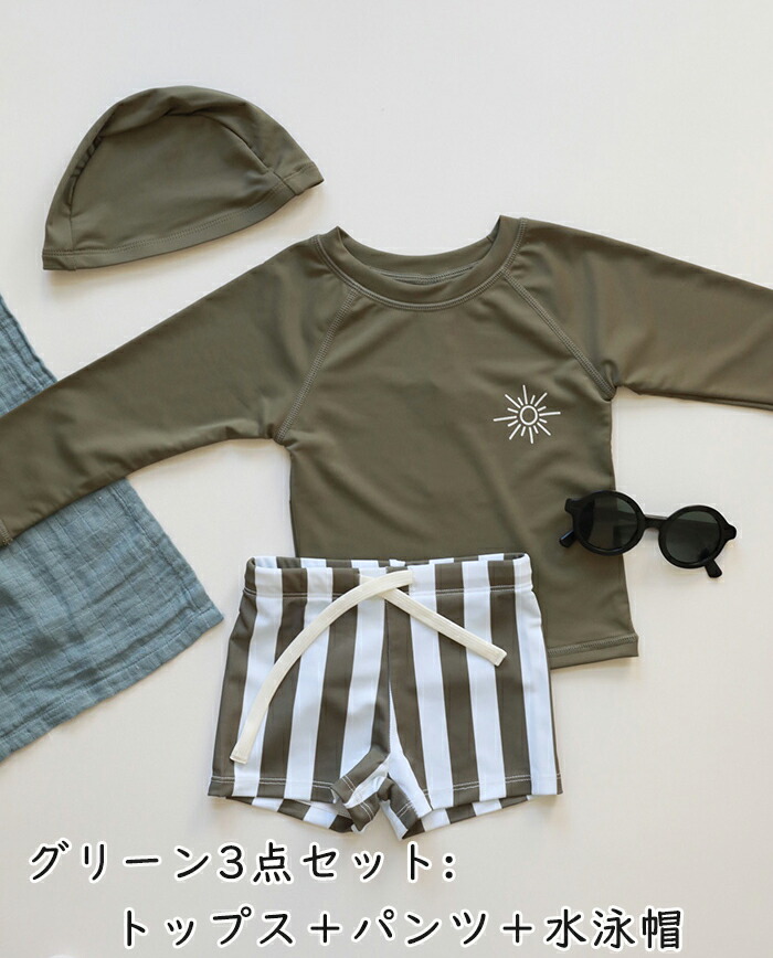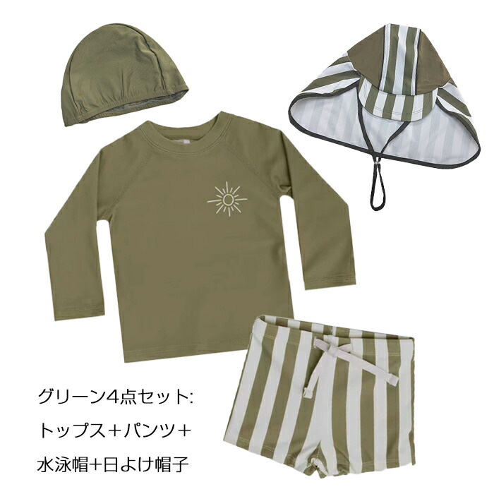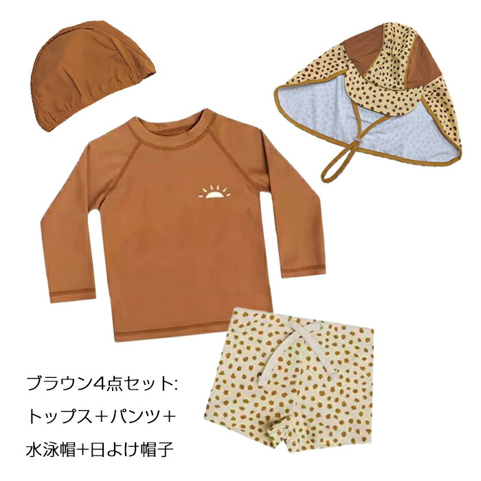 水着 男の子 キッズ セパレート 3点 キッズ ベビー マタニティ 豊富 ベージュ ブラウン グリーン ベージュ(日よけ帽子4点セット) ブラウン(日よけ帽子4点セット) グリーン(日よけ帽子4点セット) 80 90 100 110 120 130