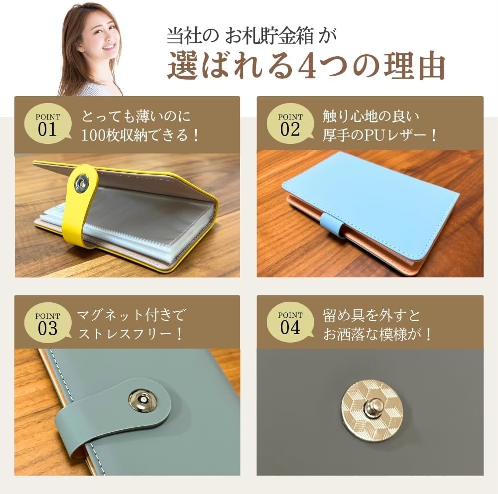 貯金バインダー お札 貯金財布 100 文房具 事務用品 手帳 ノート 家計簿 おこづかい帳 人気 ピンク パープル 黄色 赤 スカイブルー ブラウン ダークブルー ブラック グレー シール無し シール付き