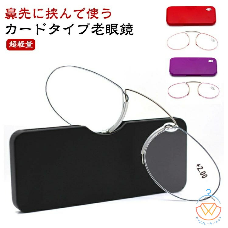 カードタイプ老眼鏡 ノーズクリップ 超 バッグ 小物 ブランド雑貨 人気 レッド ブルー パープル ブラック グレー 度入り(+1.0) 度入り(+1.5) 度入り(+2.0) 度入り(+2.5) 度入り(+3.0) 度入り(+3.5)