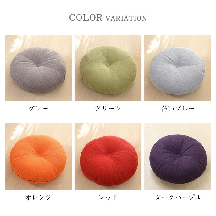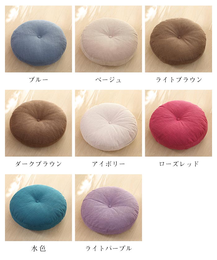 座布団 フロアクッション 丸 円形 ラ 40x40cm (1980円税込) 45x45cm (2380円税込) 50x50cm (2780円税込) 60x60cm (3180円税込) グレー グリーン 薄いブルー オレンジ レッド ダークパープル ブルー ベージュ ライトブラウン ダークブラウン アイボリー ローズレッド 水色 ライトパープル