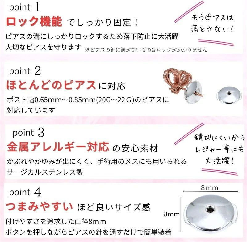 ピアス キャッチ 落ちない サージカル ジュエリー アクセサリー 人気 ゴールド(ボタンなし) シルバー(ボタンなし) ローズゴールド(ボタンなし) ゴールド(ボタン付き)