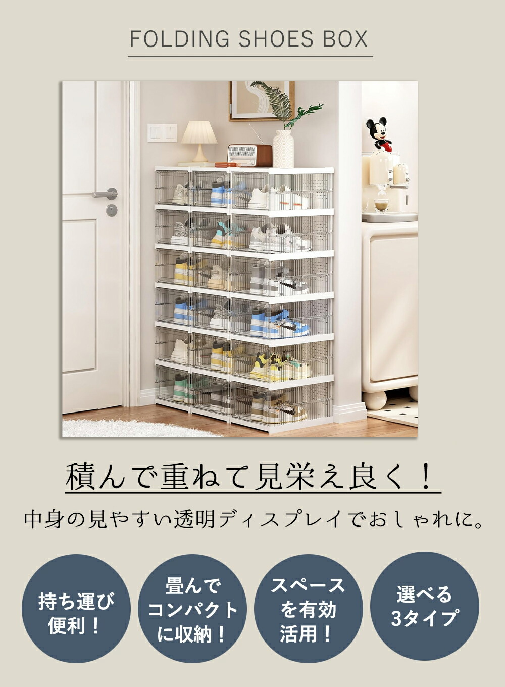 100円OFFクーポン シューズボック クリア グレー 1段 3段 6段 9段