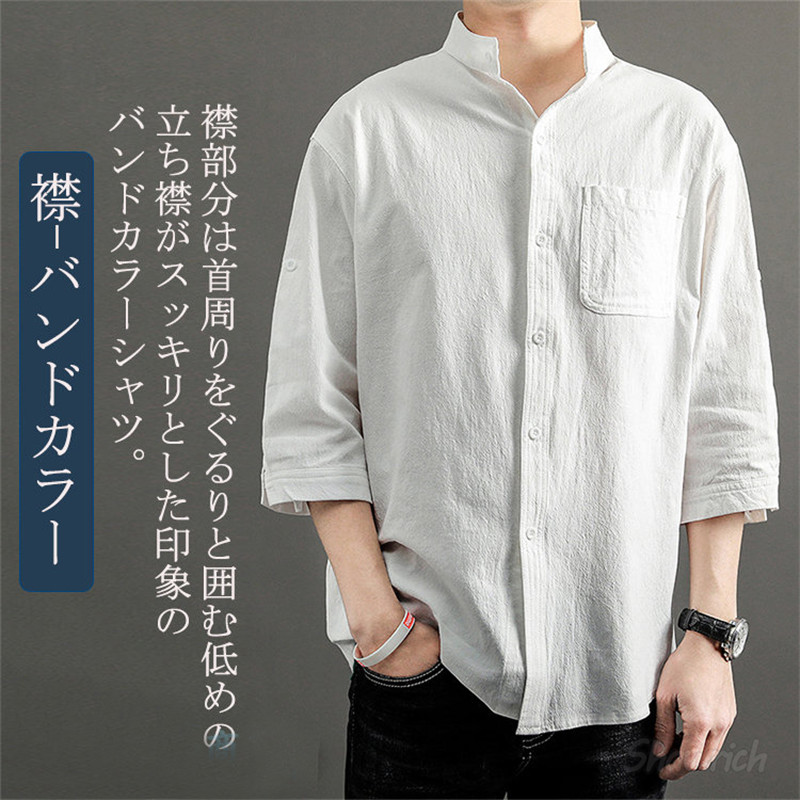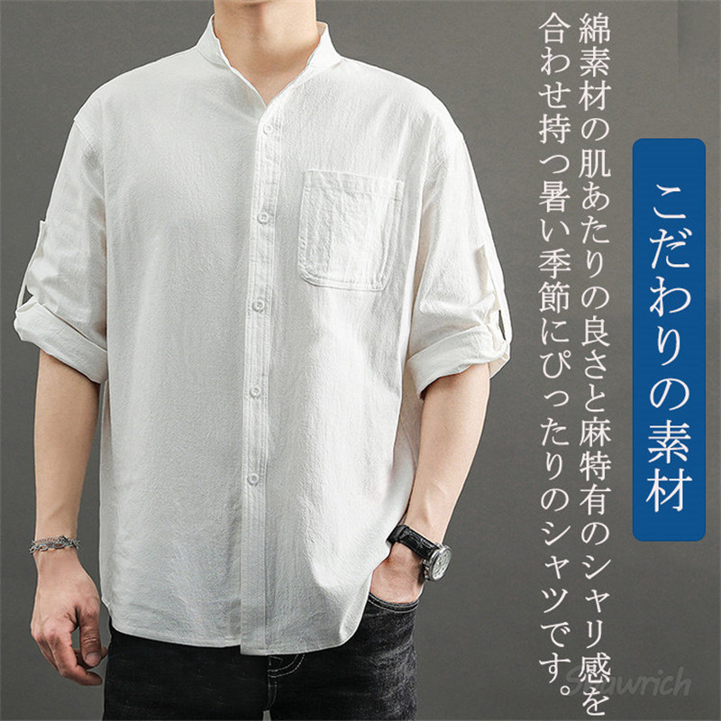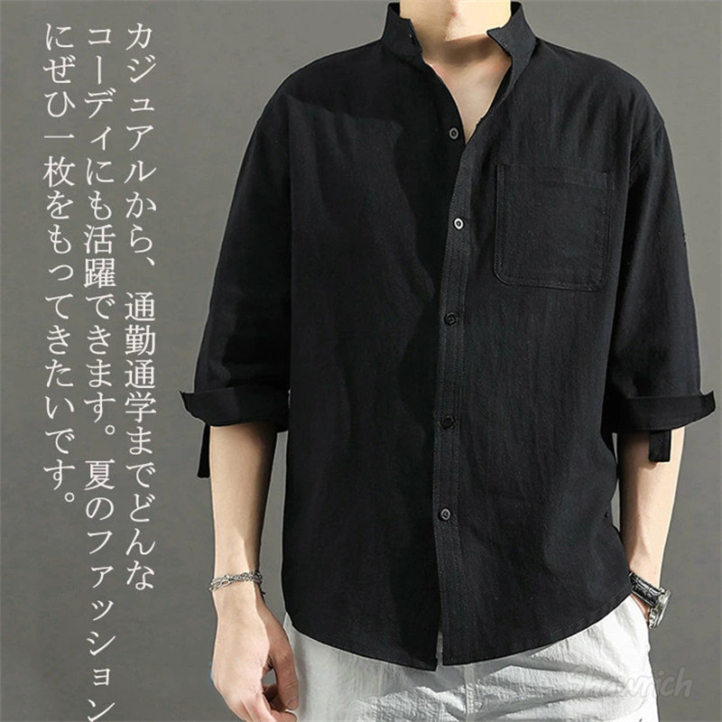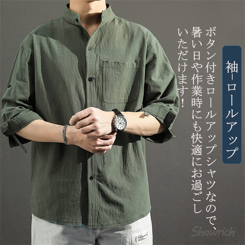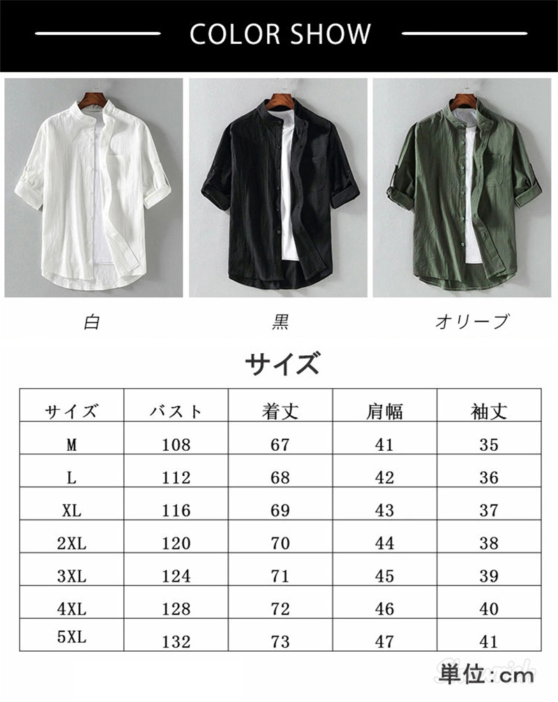 七分袖シャツ メンズ 綿100% ロー トップス カジュアルシャツ 早い者勝ち 白 黒 オリーブ M L XL 2XL 3XL 4XL 5XL