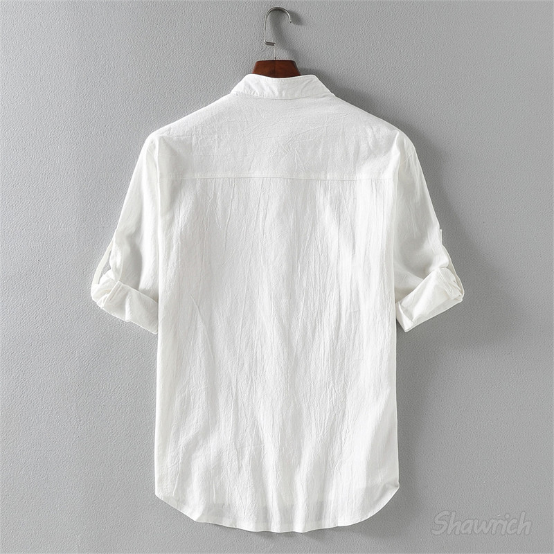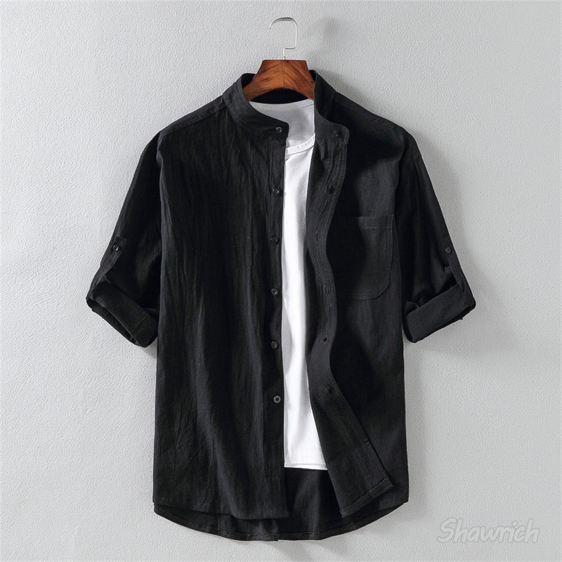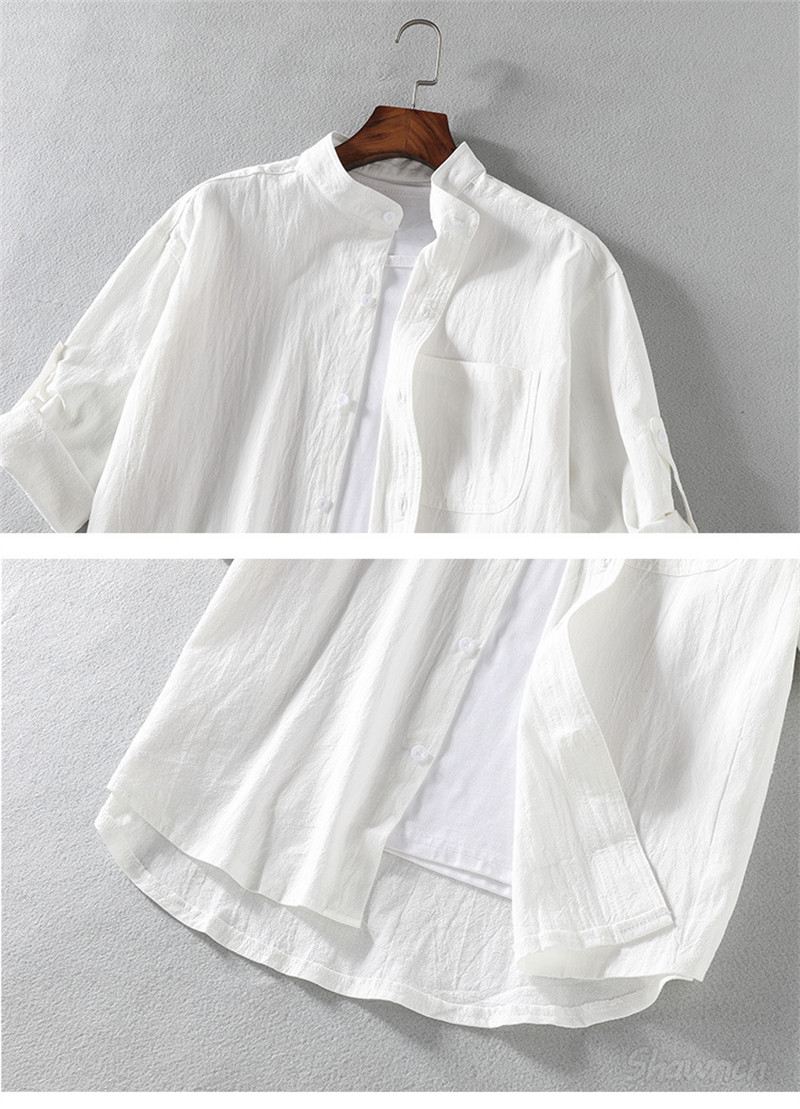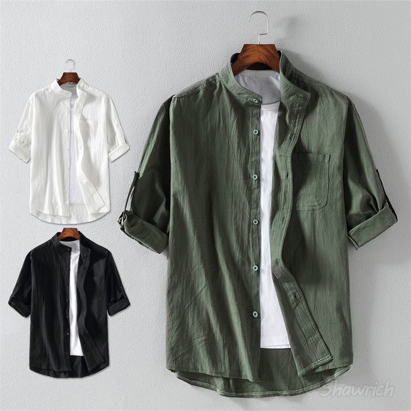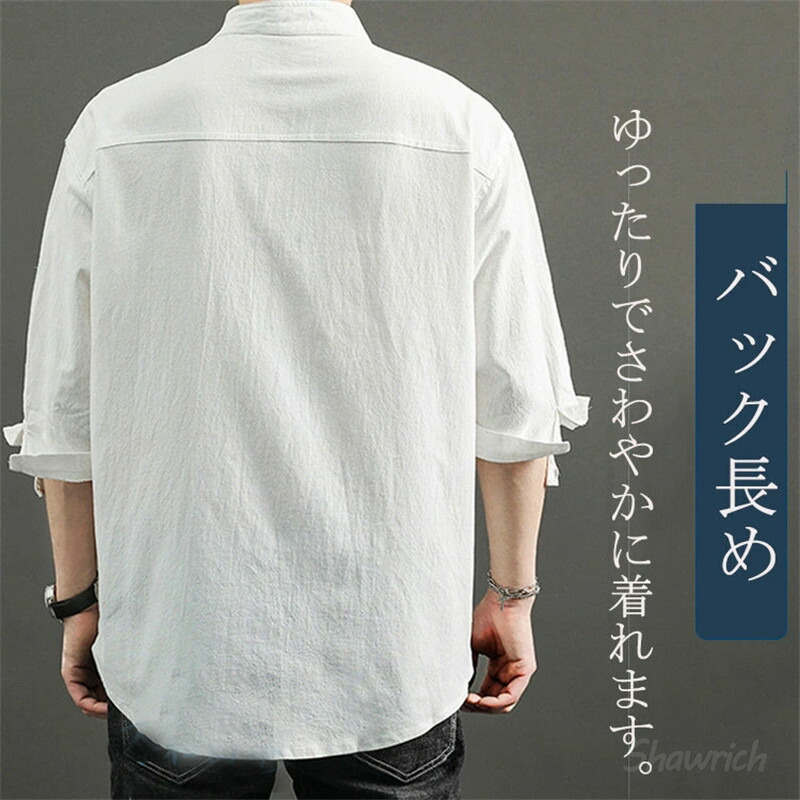 七分袖シャツ メンズ 綿100% ロー トップス カジュアルシャツ 早い者勝ち 白 黒 オリーブ M L XL 2XL 3XL 4XL 5XL