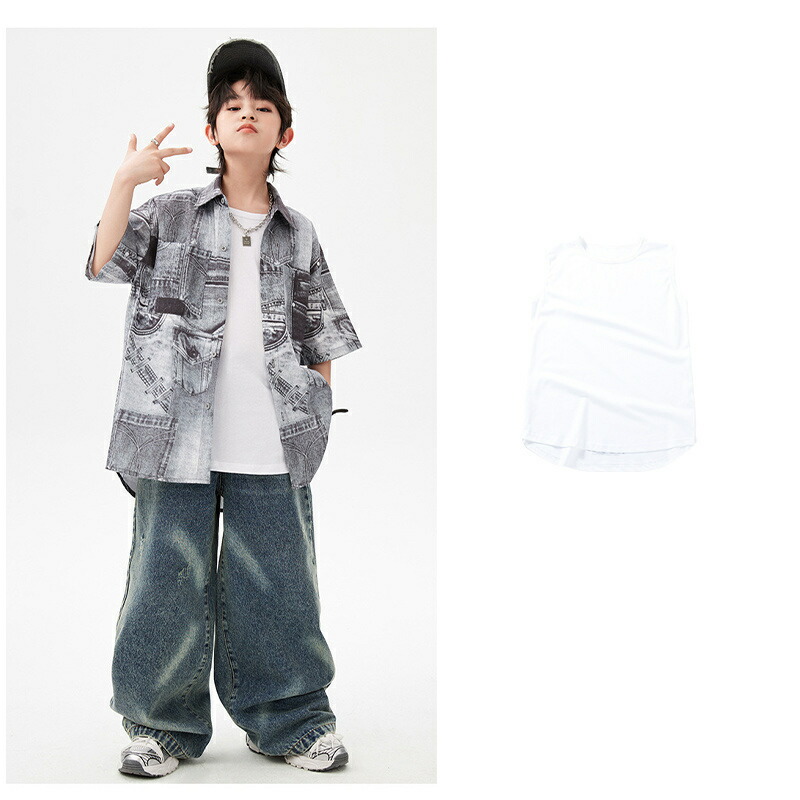 ヒップホップ ダンス衣装 セットアップ キッズ スーツ カジュアルセットアップ カジュアルパンツセット 続々登場 シャツ+ズボン シャツ+ズボン+タンクトップ シャツ タンクトップ ズボン 110cm 120cm 130cm 140cm 150cm 160cm 170cm 180cm