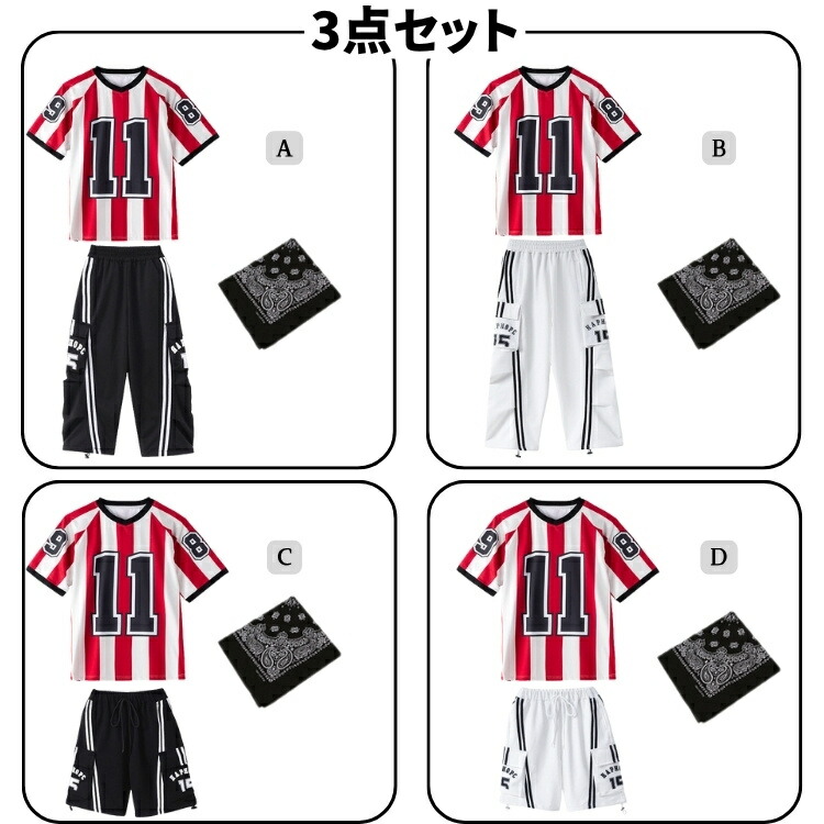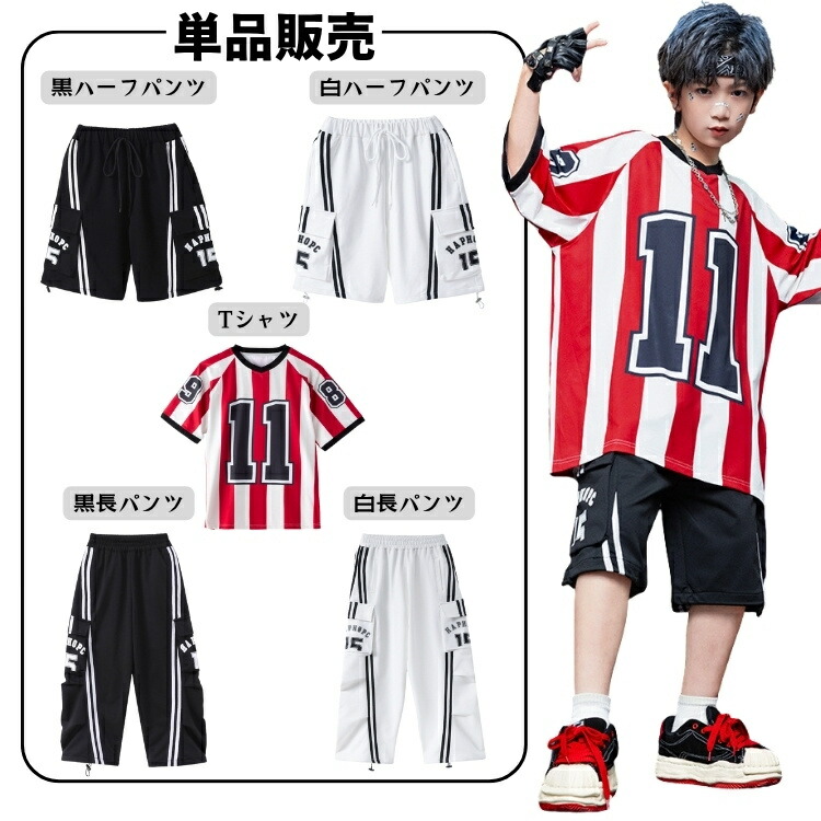 キッズ ダンス 衣装 セットアップ 白 キッズ ベビー マタニティ 新登場! 110cm 120cm 130cm 140cm 150cm 160cm 170cm 180cm Tシャツ単品 黒ハーフパンツ単品 白ハーフパンツ単品 黒長パンツ単品 白長パンツ単品 3点セットA 3点セットB 3点セットC 3点セットD 2点セットA 2点セットB 2点セットC 2点セットD