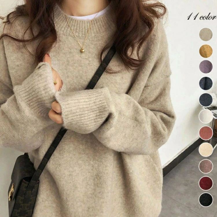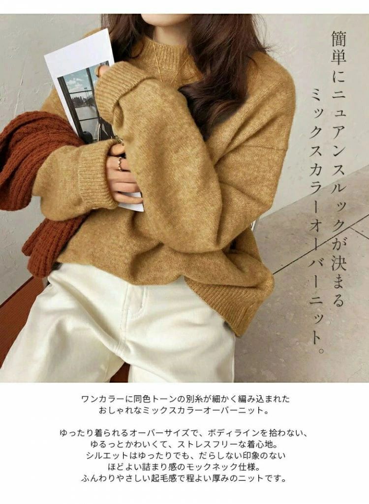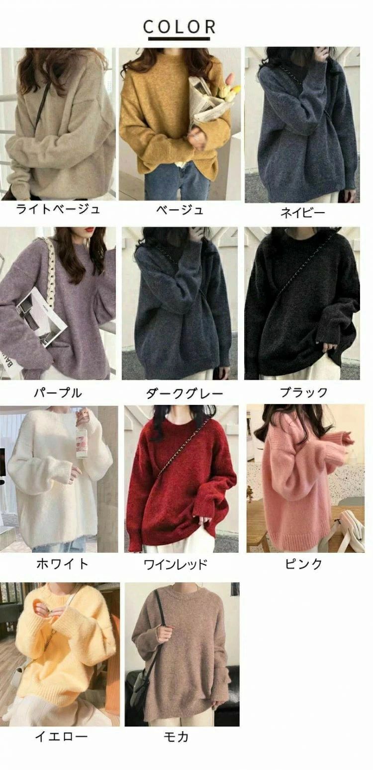 ミックスカラーオーバー ニット オーバ レディースファッション 新登場! パープル ブラック ベージュ ライトベージュ ダークグレー ネイビー ホワイト ピンク イエロー モカ ワインレッド