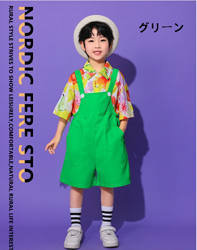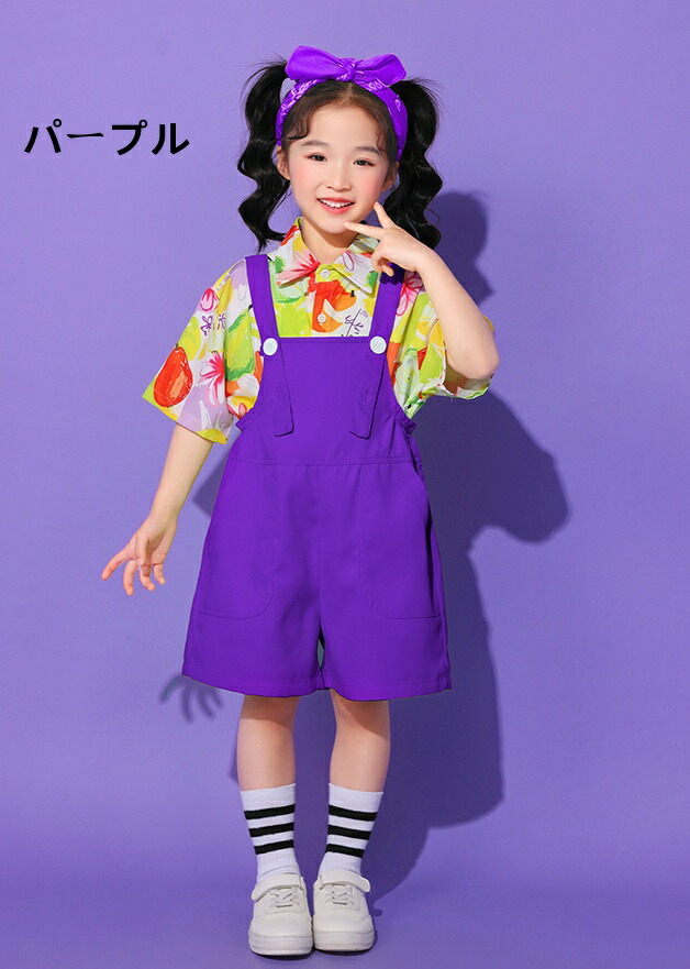 子ども ダンス服 サロペット キッズ服 キッズ ボトムス パンツ 新作 イエローサロペット レッドサロペット オレンジサロペット グリーンサロペット ブルーサロペット パープルサロペット ローズサロペット ライトグリーンサロペット なし シャツ 靴下 シャツ+靴下