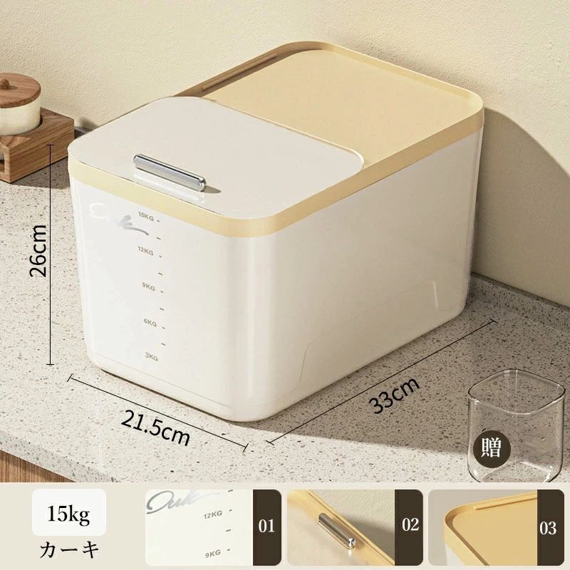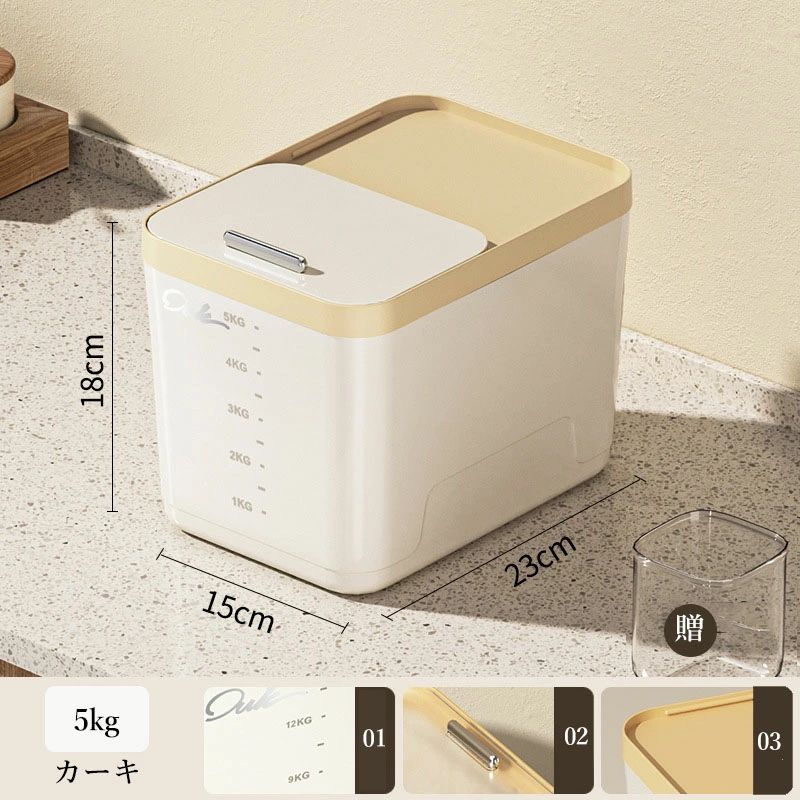 密閉 米びつ 5kg 10kg 15k 保存容器 調味料入れ 米びつ 通販 カーキ 透明 5kg 10kg 15kg