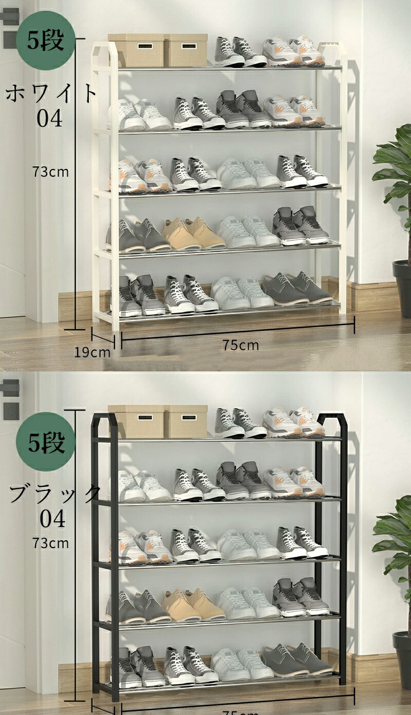 靴箱シューズラック 靴棚 靴収納ラック 4段 5段 ブラック ホワイト