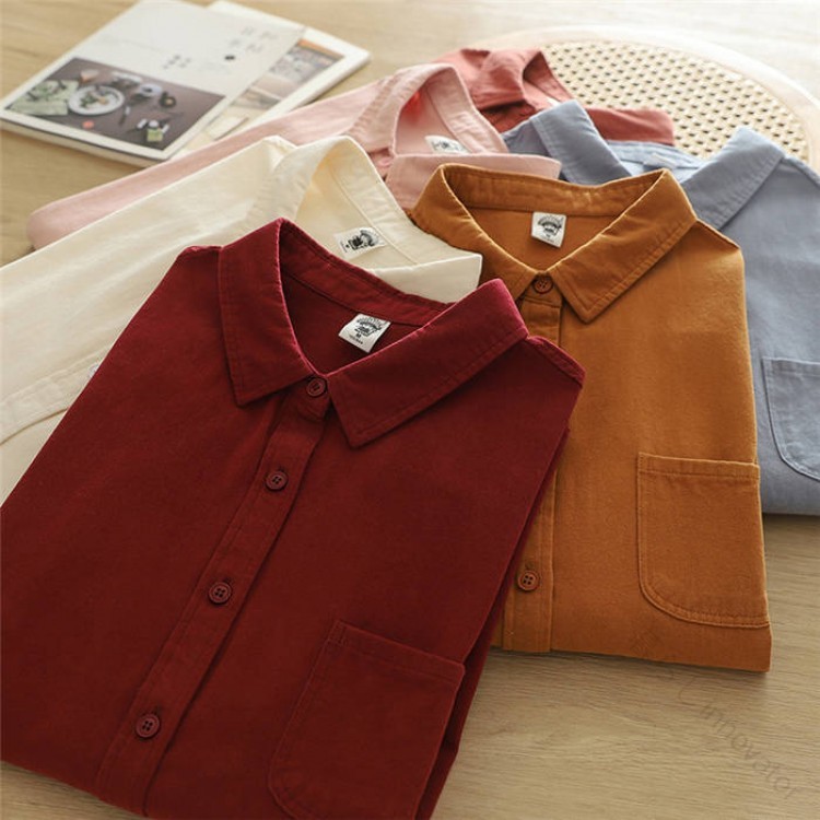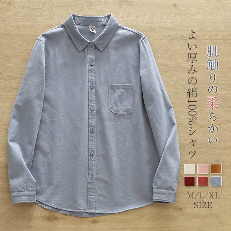 シャツ綿100%レディースネルシャツ微 レディースファッション 人気 ブルー オフホワイト ワインレッド 赤オレンジ カラメル ピンク M L XL