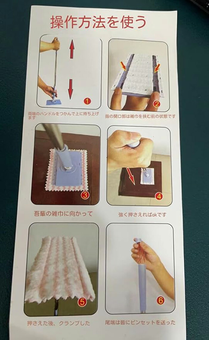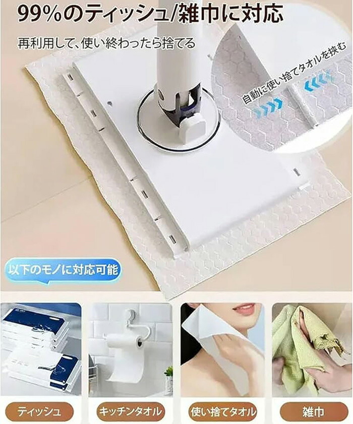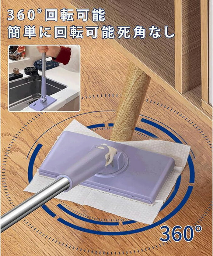 自動で雑巾を挟むモップ、ペーパータオル 日用品雑貨 文房具 手芸 通販 パープル+4枚両面布 ホワイト+4枚両面布 70cm 93cm