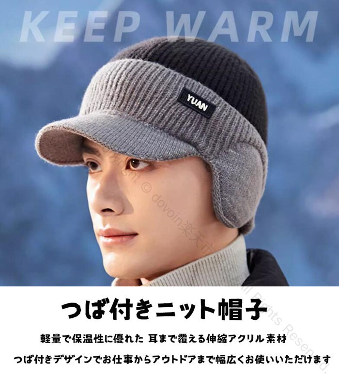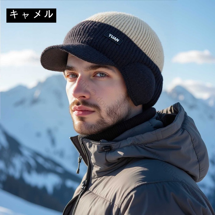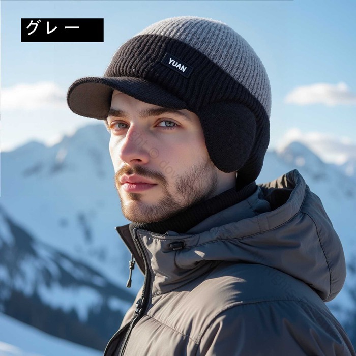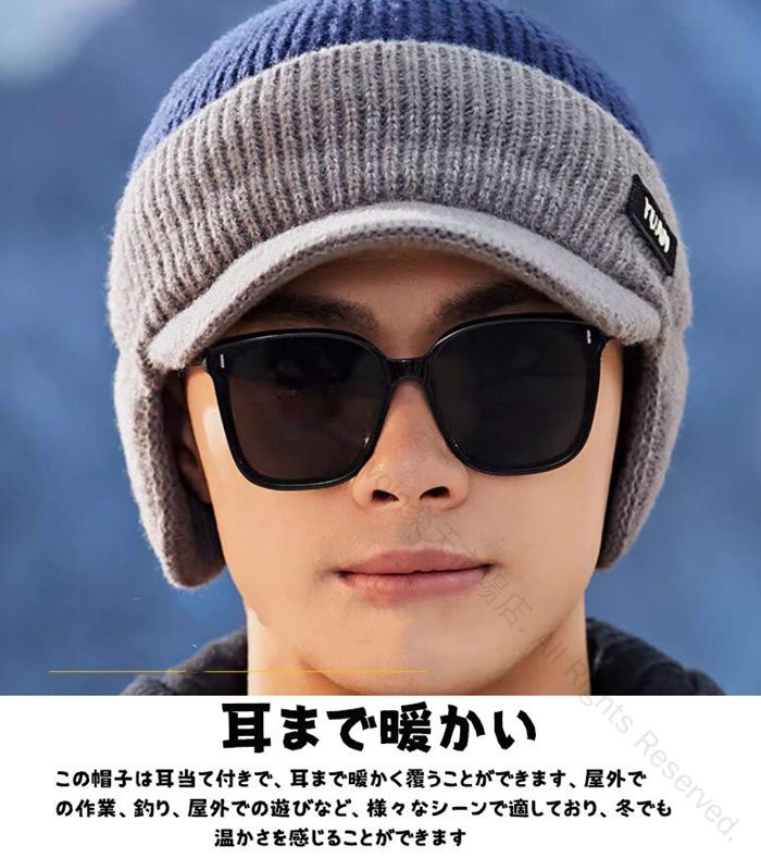 ニット帽 耳あて付き メンズ 秋冬 防 バッグ 小物 ブランド雑貨 人気 ネイビー ベージュ グレー 黒