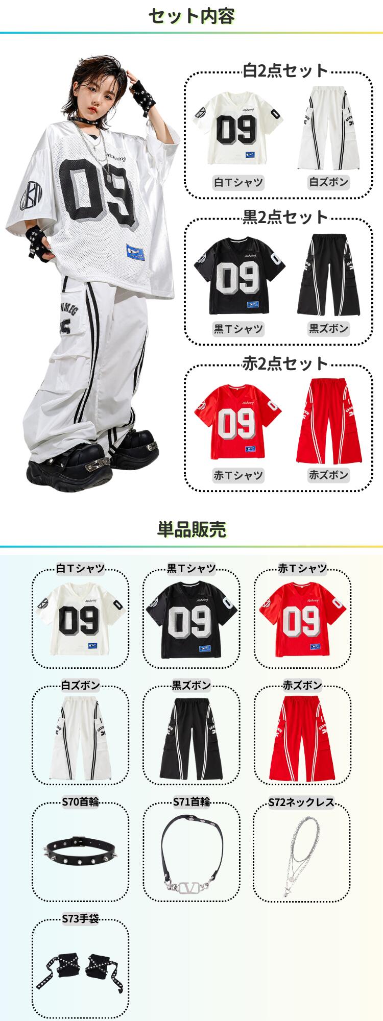 黒 白 赤 ダンス 衣装 ヒップホップ キッズ スーツ カジュアルセットアップ カジュアルパンツセット 続々登場 白2点セット 黒2点セット 赤2点セット 白Tシャツ単品 黒Tシャツ単品 赤Tシャツ単品 白ズボン単品 黒ズボン単品 赤ズボン単品 S70首輪単品 S71首輪単品 S72ネックレス単品 S73手袋単品 110cm 120cm 130cm 140cm 150cm 160cm 170cm 180cm フリーサイズ
