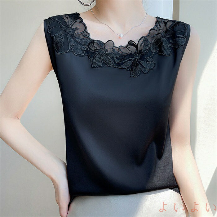 タンクトップ シルク キャミソール レ ウィッグ つけ毛 フルウィッグ 新登場! 黒 白 ライトベージュ M L XL 2XL 3XL