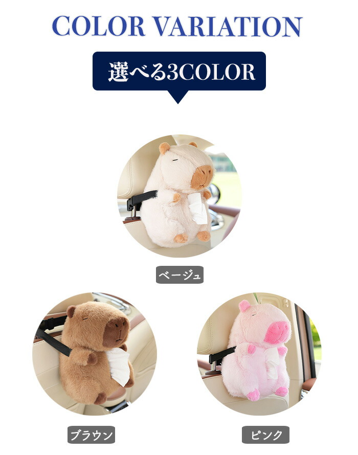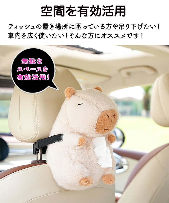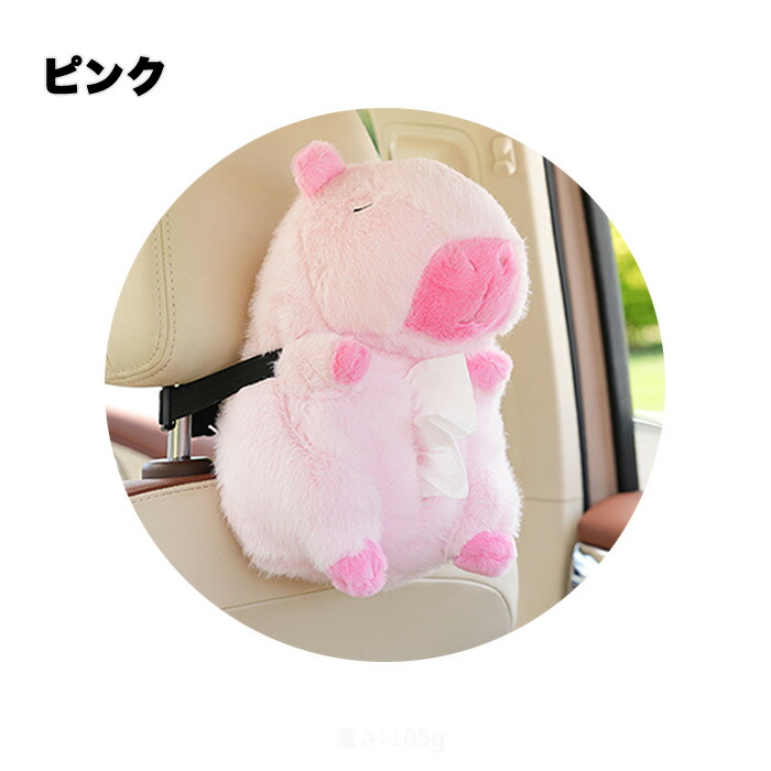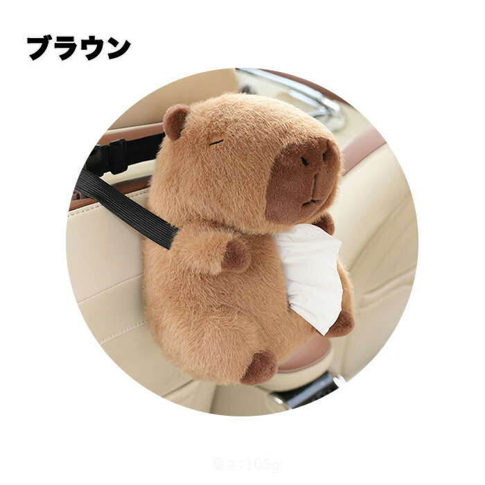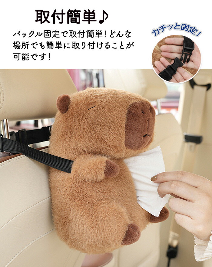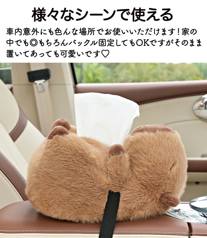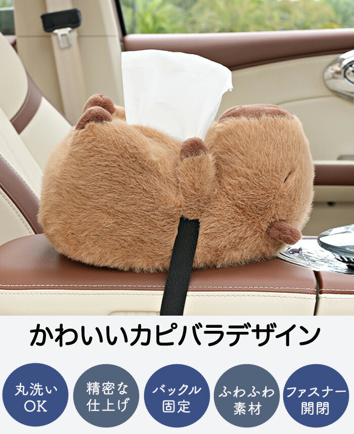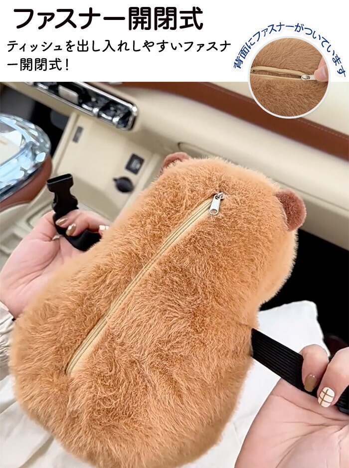 ティッシュケース 車用ティッシュケース 車用 車内 バックル固定 バックル 簡単取付 取付簡単 カピバラ ふわふわ 可愛い ぬいぐるみ おくだけ ファスナー開閉式 家 ティッシュボックス ホル お部屋