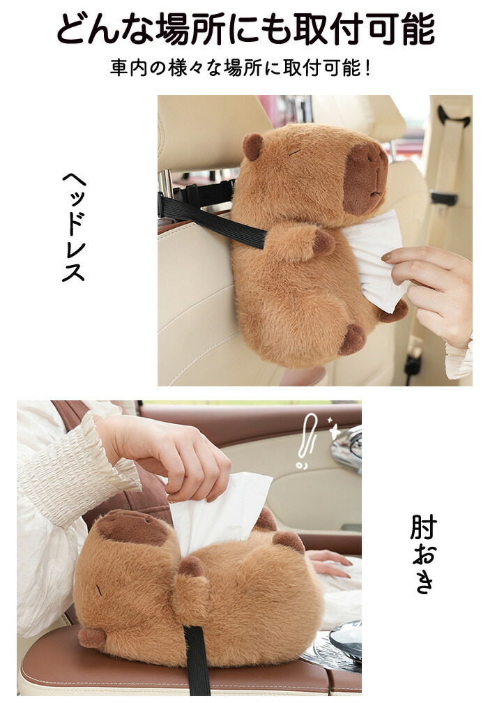 ティッシュケース 車用ティッシュケース 車用 車 車内 バックル固定 バックル 簡単取付 取付簡単 カピバラ ふわふわ 可愛い ぬいぐるみ おくだけ ファスナー開閉式 お部屋 家 ティッシュボックス ホルダー 内装 カー用品 アニマル柄 アニマル アニマルティッシュケース 動物 ヘッドレス アーム置き