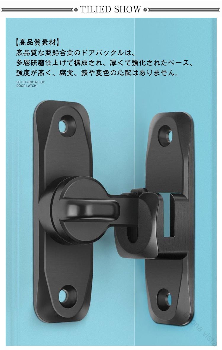 引き戸 90度 180度 窓ロック 穴あけ不要 後付け 亜鉛合金製 引き戸用鍵 ドア留め金ロック 回転式 フリップラッチロック とびらロック スライドロック 部屋 ドアロック 防犯対策に最適 鍵付き