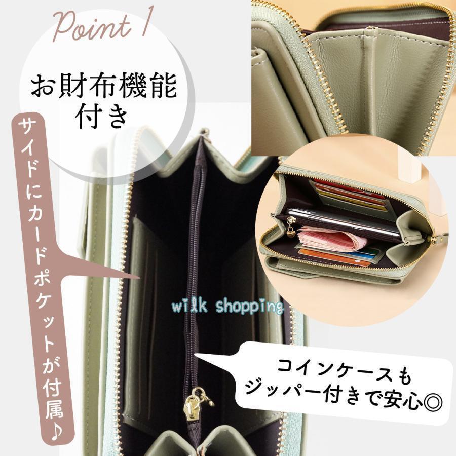スマホショルダー 財布機能付き レディ レディースファッション 豊富 ブラック ライトグリーン ピンク グレ
