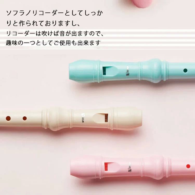 フルート 小学校 お子様用 リコーダー ホワイト ピンク ブルー 6穴 8穴