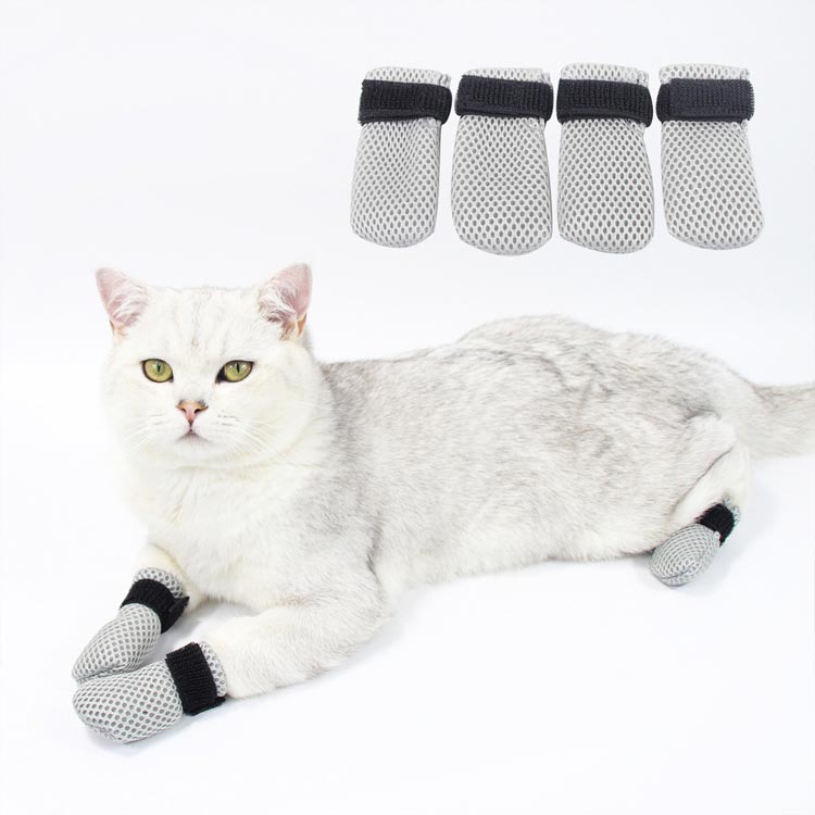 猫用爪カバー 猫手袋 猫足カバー 猫 グレー ブラック 4枚セットS 4枚セットM 4枚セットL 4枚セットXL