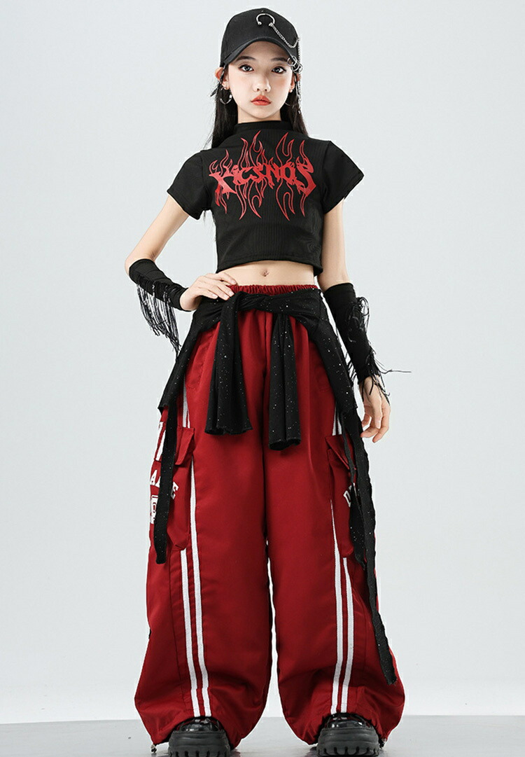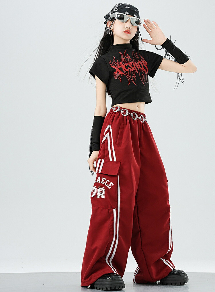 赤 黒 ダンス衣装 キッズ ダンス 衣 キッズ スーツ カジュアルセットアップ カジュアルパンツセット 早い者勝ち Tシャツ+腕カバー パンツ単品 2点セット 3点セットA 3点セットB 110cm 120cm 130cm 140cm 150cm 160cm 170cm 180cm