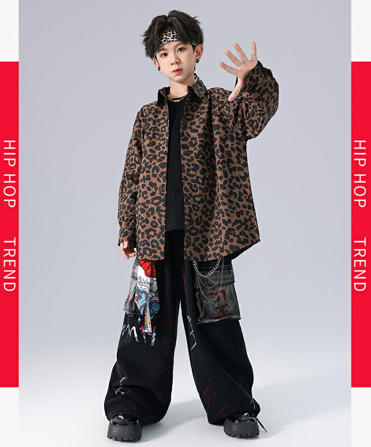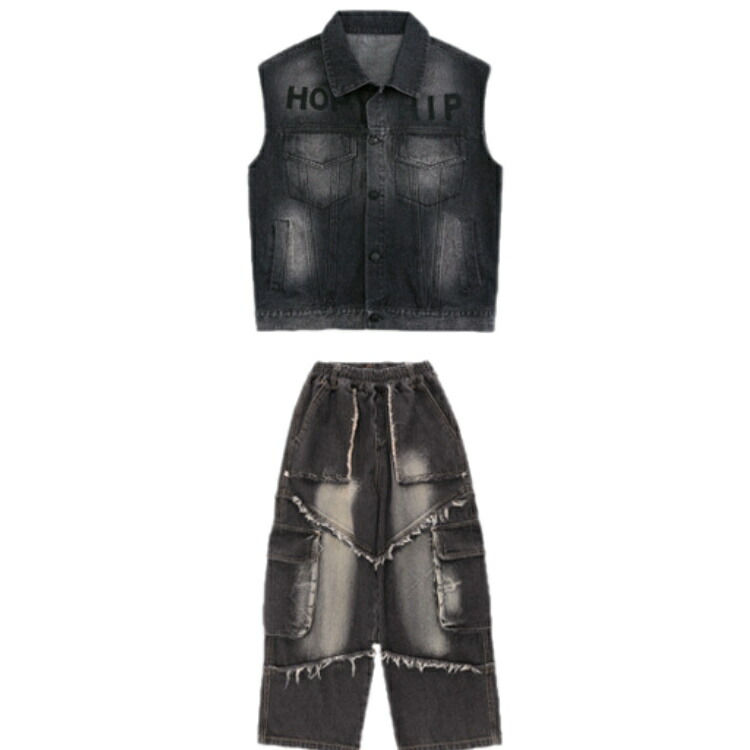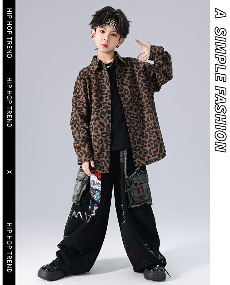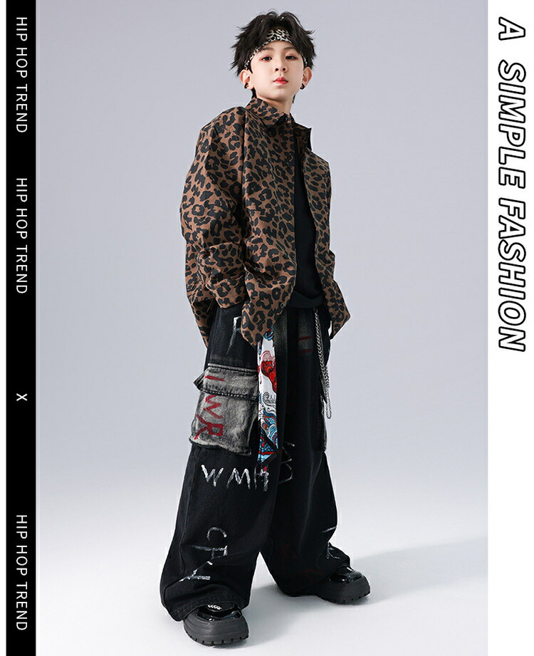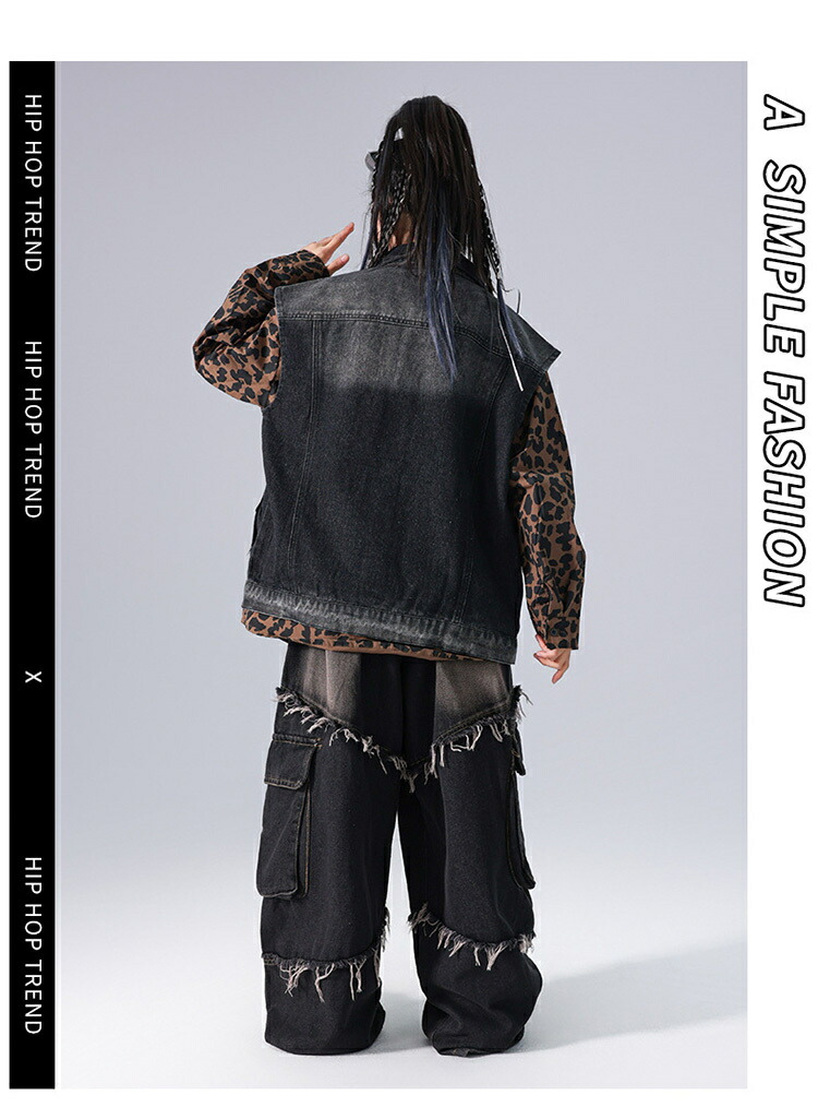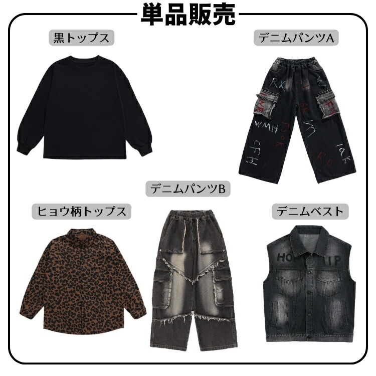 デニム ヒョウ柄 キッズダンス衣装 韓 キッズ スーツ カジュアルセットアップ カジュアルパンツセット 続々登場 黒トップス ヒョウ柄トップス デニムベスト デニムパンツA デニムパンツB 2点セットA 2点セットB 3点セットA 3点セットB 120cm 130cm 140cm 150cm 160cm 170cm 180cm