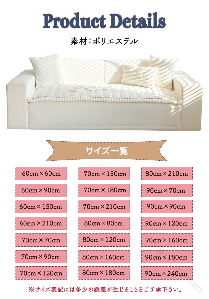 ふわふわソファーパッド もこもこ暖かい アイボリー グレー チャコール ベージュ グリーン 60*60cm 60*90cm 60*150cm 60*210cm 70*70cm 70*90cm 70*120cm 70*150cm 70*180cm 70*210cm 80*80cm 80*120cm 80*160cm 80*180cm 80*210cm 90*70cm 90*90cm 90*120cm 90*160cm 90*180cm 90*240cm