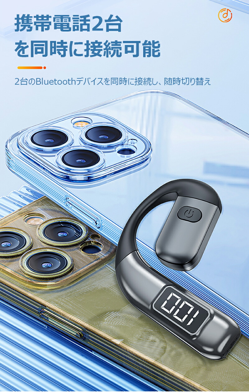 Bluetooth5.5ワイヤレスイヤ ブラック グレー ブルー ホワイト