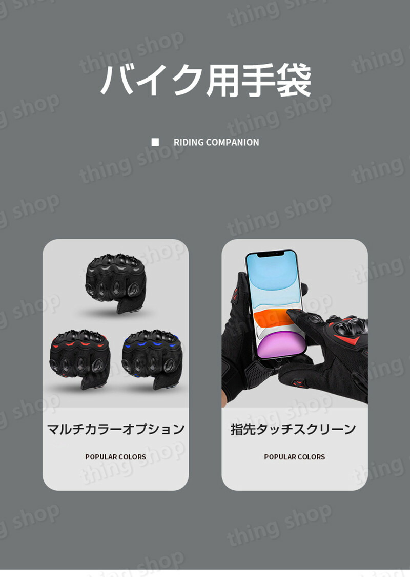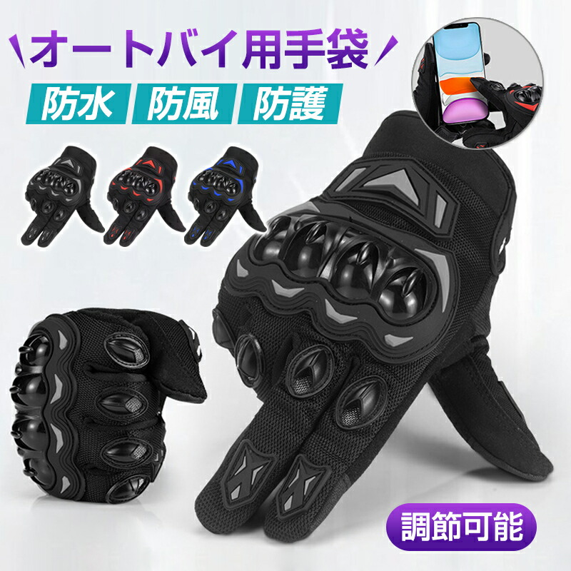バイク グローブ フルフィンガー ナッ M L XL 2XL ブラック レッド ブルー