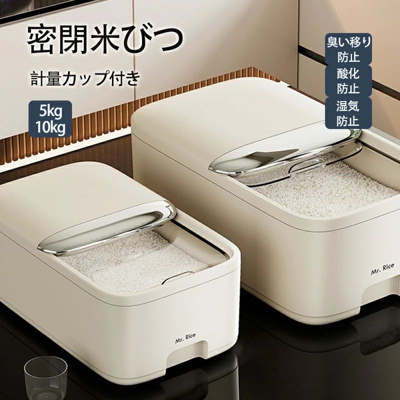 密閉 米びつ 5kg 10kg 計量カ ホワイト グレー 5kg 10kg