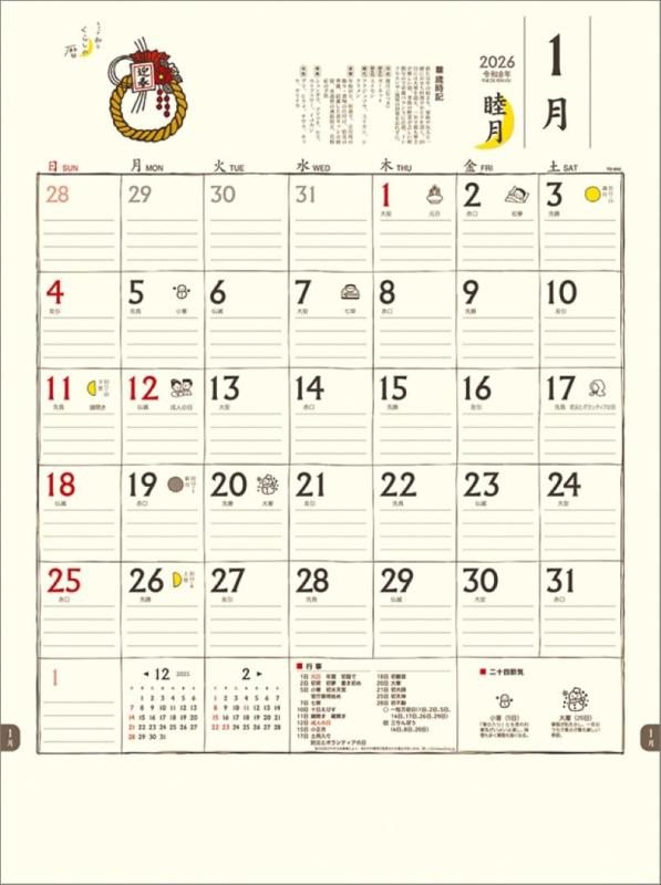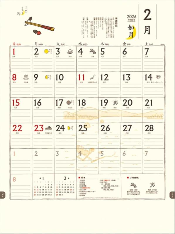 ちょっと和なくらしの暦 TD-843 2026年 カレンダー 壁掛け CL26-1004