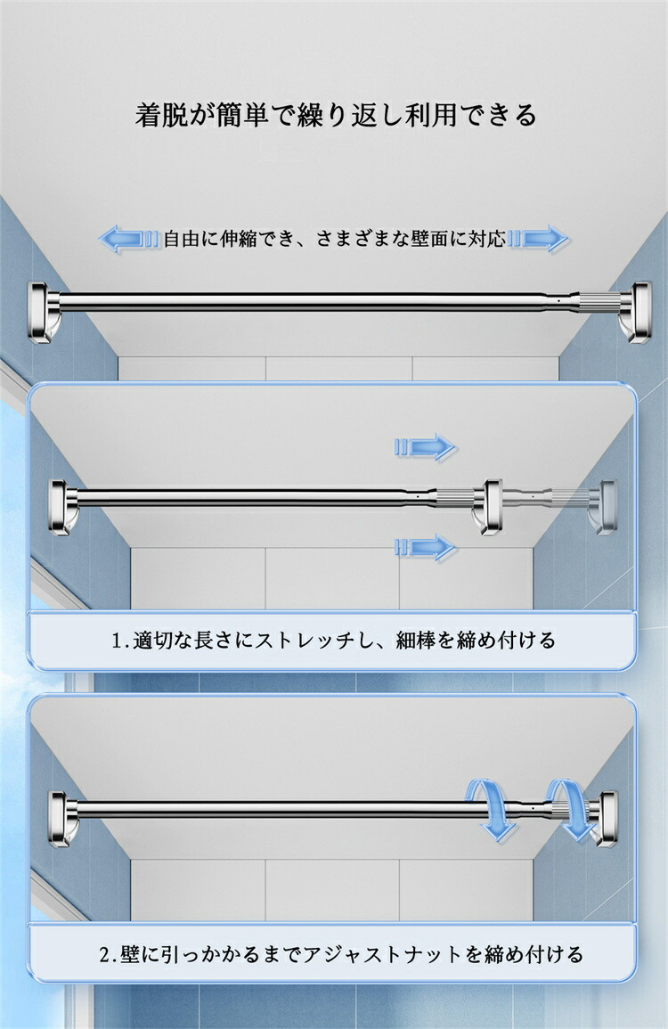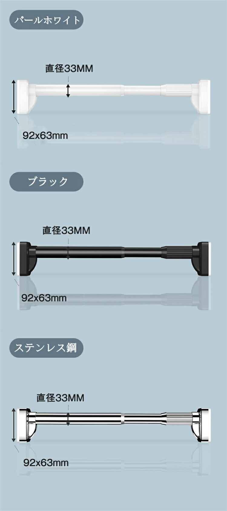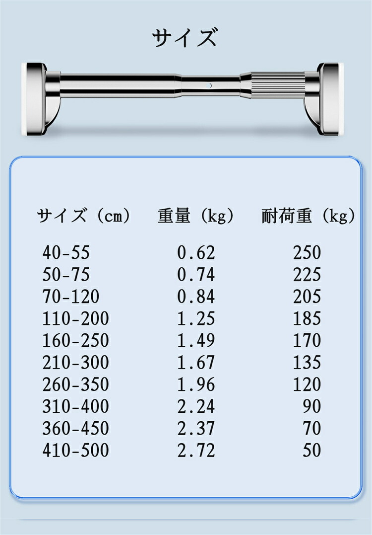突っ張り棒 0.4~5m 40-500 0.4~0.5m 0.5~0.7m 0.7~1.2m 1.1~1.9m 1.6~2.5m 2.1~3.0m 2.6~3.5m 3.1~4.0m 3.6~4.5m 4.1~5.0m