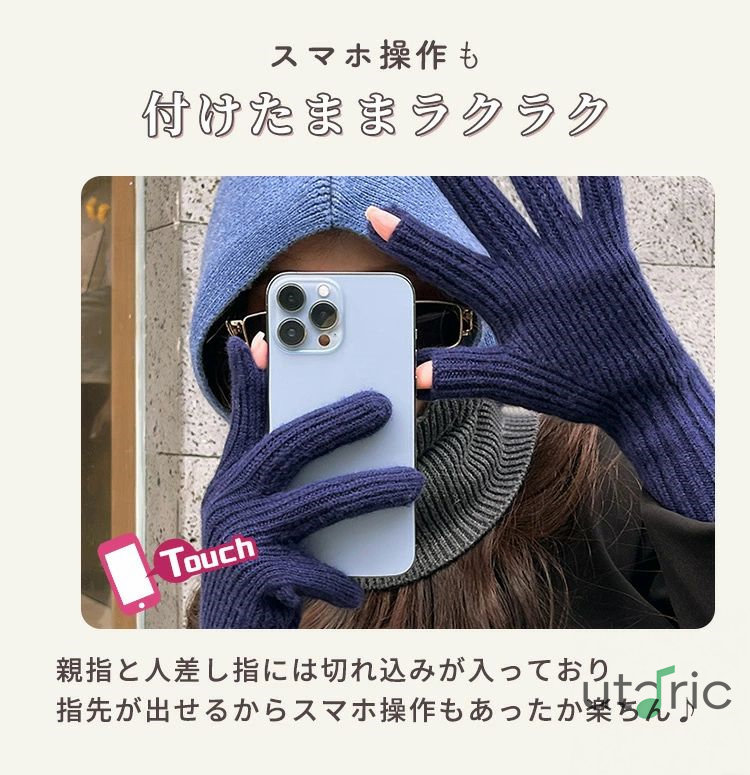 手袋 レディース スマホ対応 親指 人 手袋 アームウォーマー レディース手袋 人気 ブラック ネイビー ダークグレー グレー ベージュ ペールイエロー キャラメル