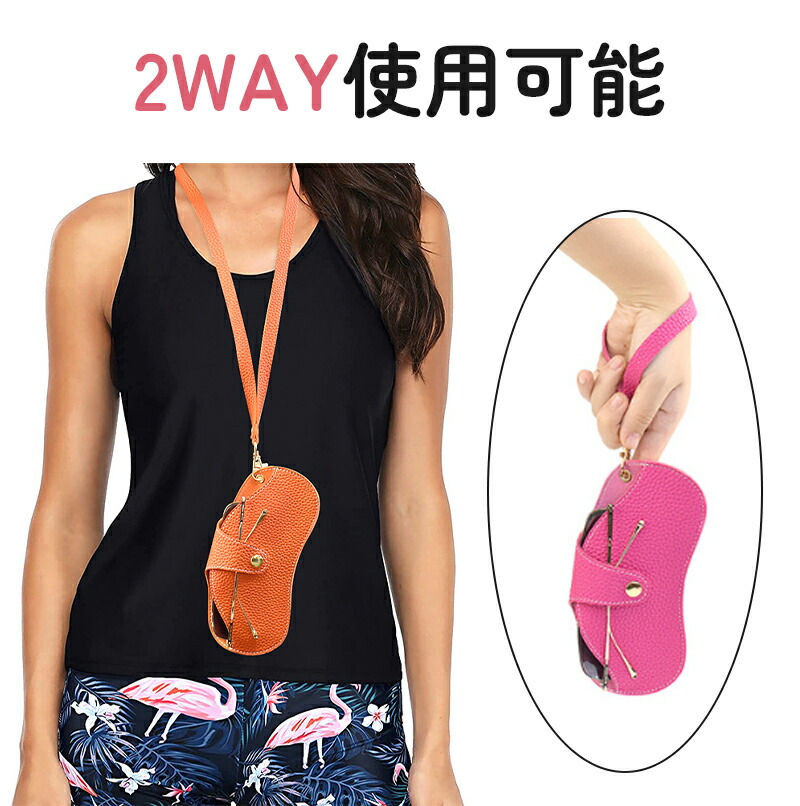 メガネケース ストラップ付き 首掛け 眼鏡 サングラス 眼鏡小物 眼鏡ケース 早い者勝ち ブラウン ブラック コーヒー色 ローズレッド オレンジ ライトグレー