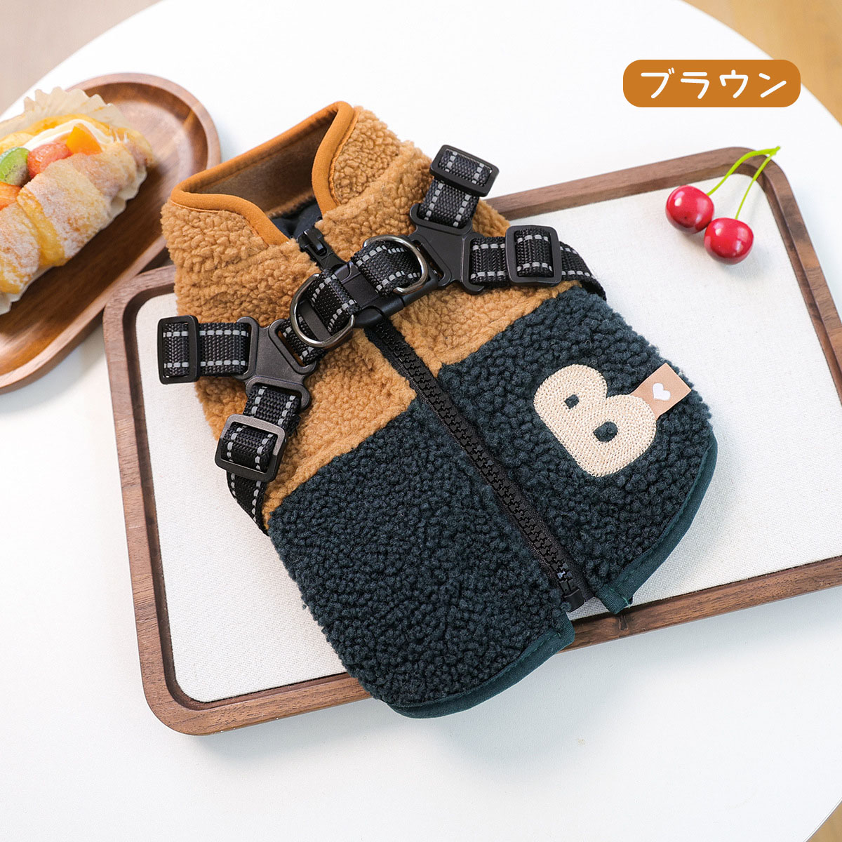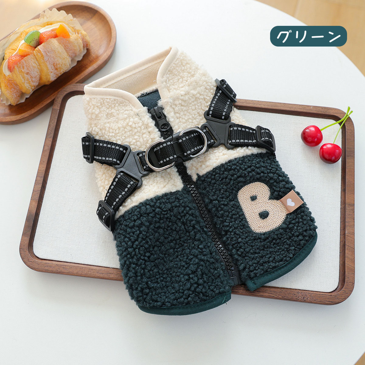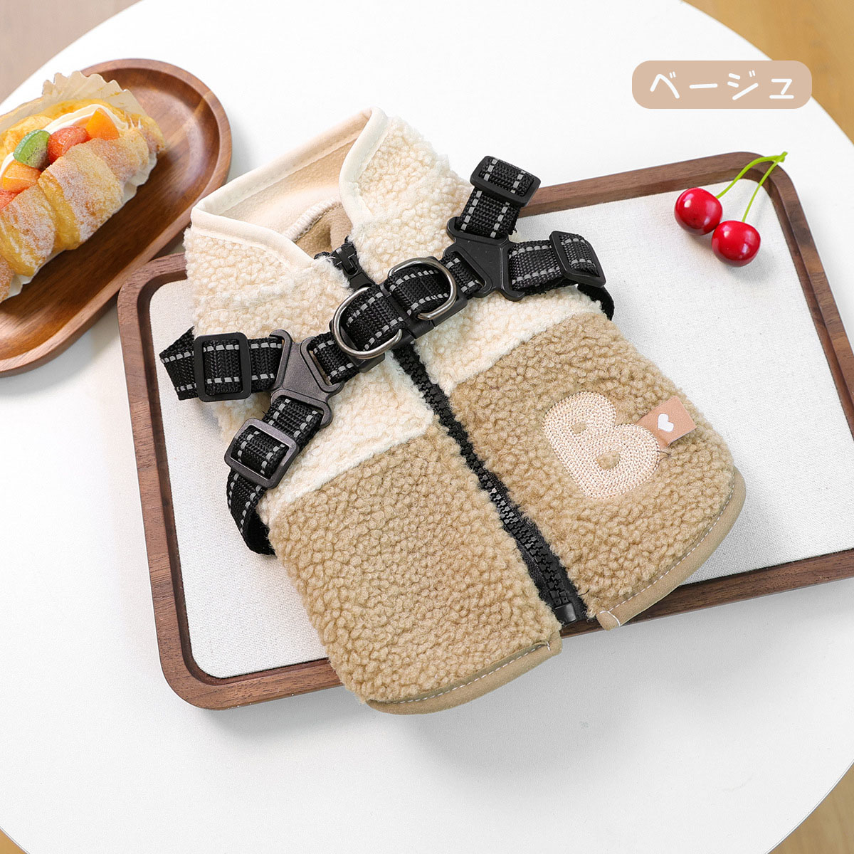 犬 服 ウエア ベスト 犬の服 秋冬 背中開き タンクトップ ジャケット アウター ハーネス付き ファスナー ジッパー ダウン風 暖かい ドッグウェア あったか 散歩着 撥水 着せやすい 裏 お出かけ