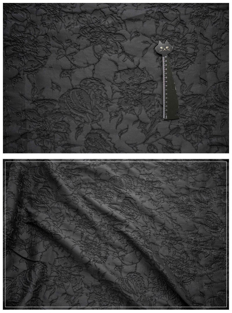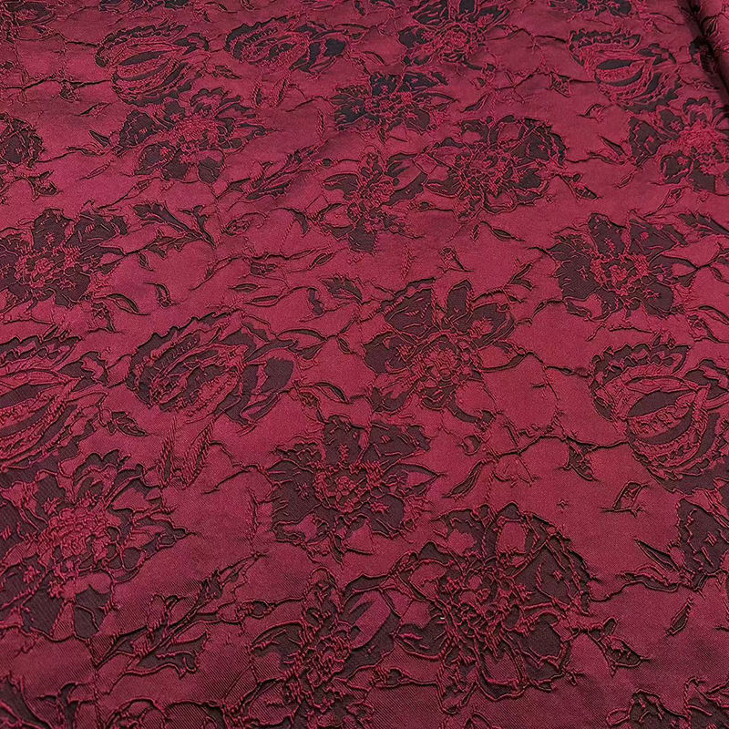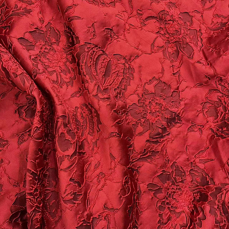 140cm幅 90cm単位 生地 布 布地 きじ ジャカード生地 エンボス生地 色織り 花柄 赤 ブラック レッド 黒