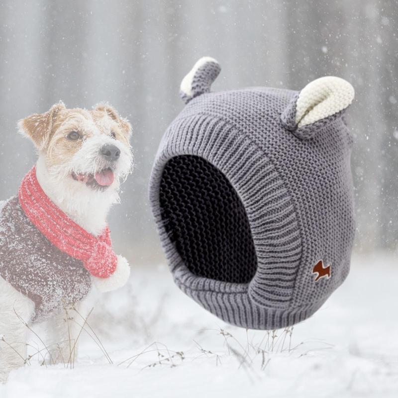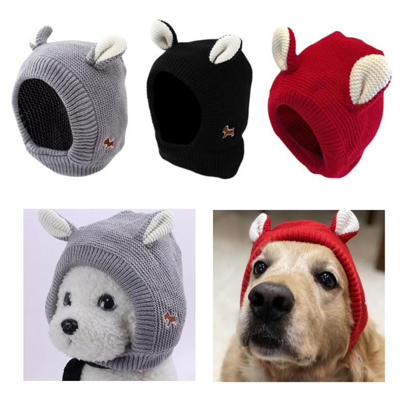 ペット用冬季イヤーマフ帽子 耳カバー ペット ペットグッズ 通販 グレー 黒 赤