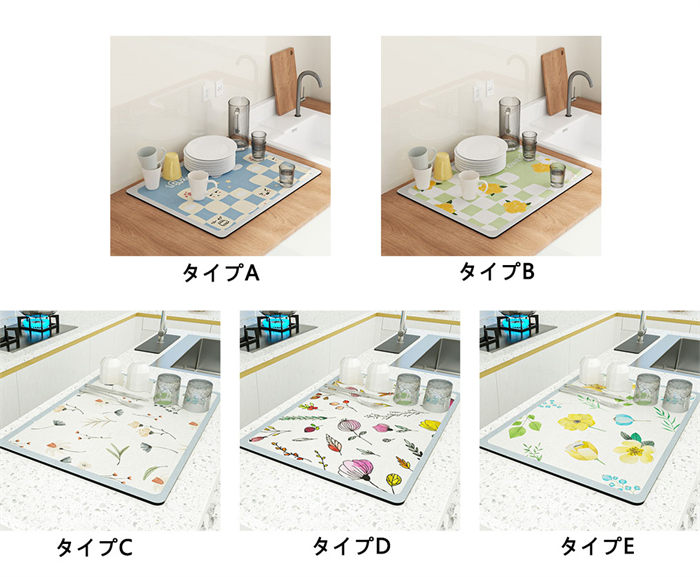 食器収納 洗面所マット ソフト 珪藻土 キッチン用品 食器 調理器具 新作 ブラック ホワイト ブルー グレー オフホワイト タイプA タイプB タイプC タイプD タイプE タイプF タイプG タイプH タイプI