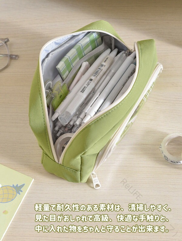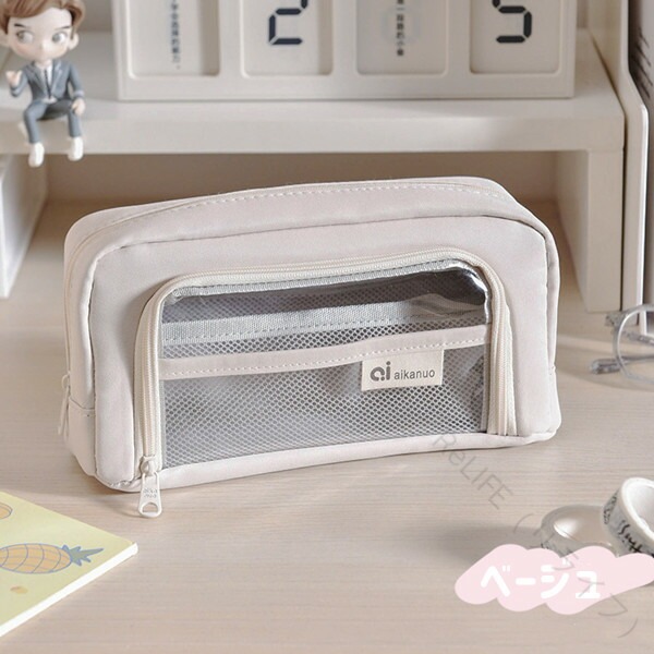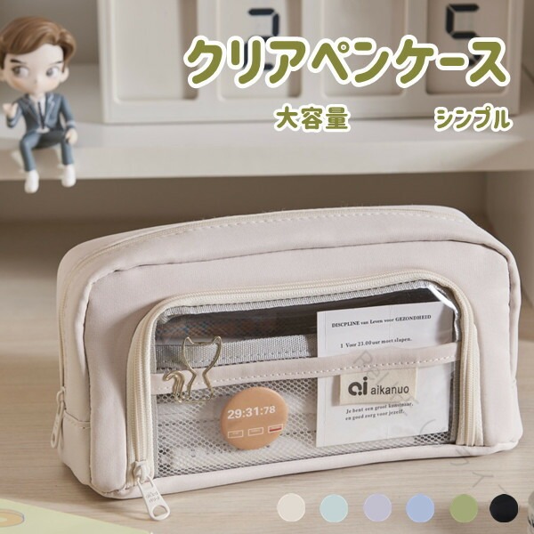 おしゃれ韓国風クリアペンケース 大容量 日用品雑貨 文房具 手芸 特集 ベージュ ミントブルー グレー ブルー グリーン ブラック