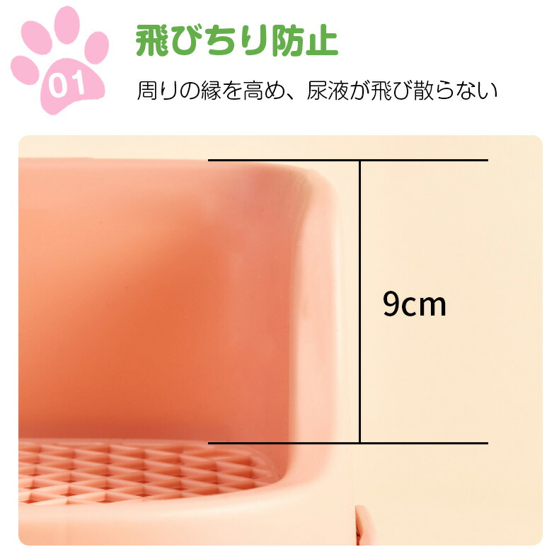 周囲に尿が飛びにくい設計で、ケージ内を清潔に保ちます。