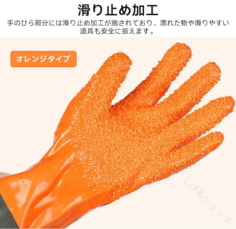 漁業用ゴム手袋 防水ロング手袋 防寒作 日用品雑貨 文房具 手芸 人気 A型(裏起毛) B型(夏用) ブルー グリーン オレンジ