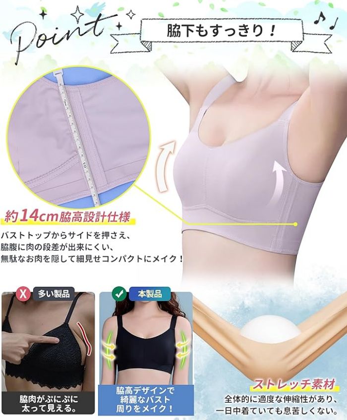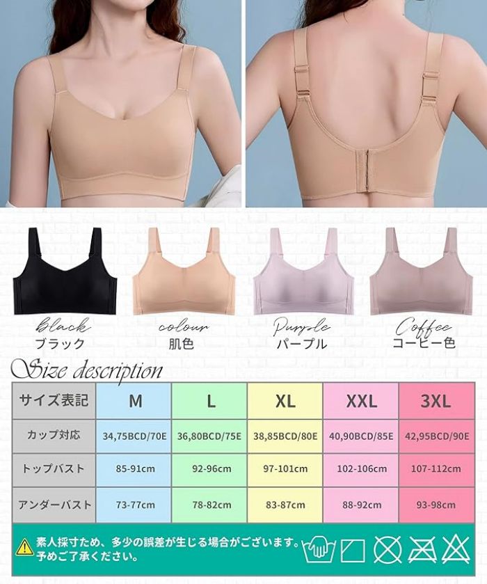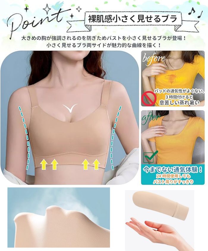 胸を小さく見せるブラ シームレス 見痩 インナー 下着 ナイトウエア 特集 肌色 パープル ブラック コーヒー M L XL 2XL 3XL